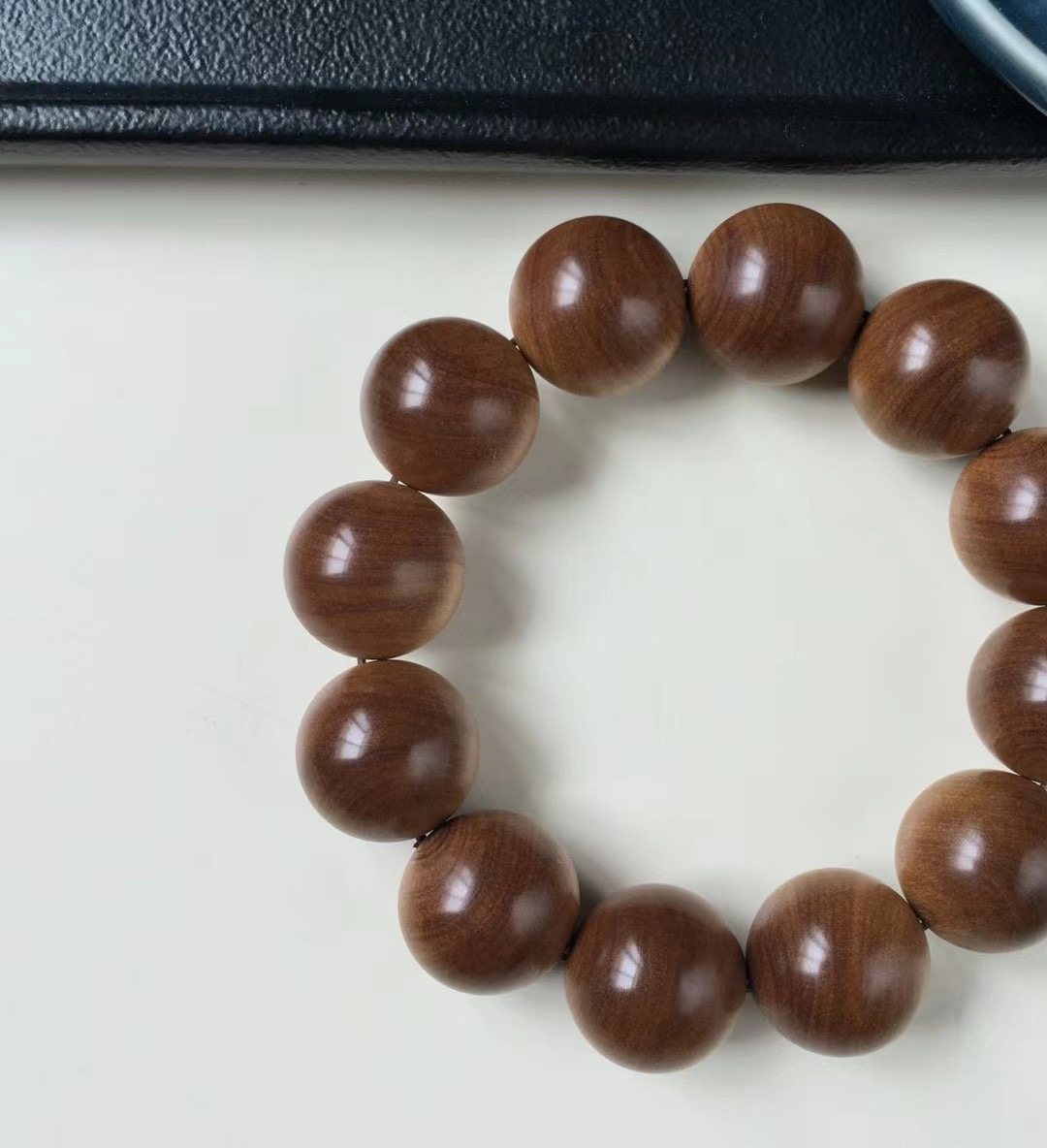 这一款老山檀手串精选优质的黑肉好料制作,密度大,肉质紧实,达到了沉水的级别。颜色润,油性足,衬托出细腻的纹理,香气醇厚细腻,沁人心脾,层次感分明,绝对的老山檀优质好料。趁着五一价格活动实惠,入手一个!