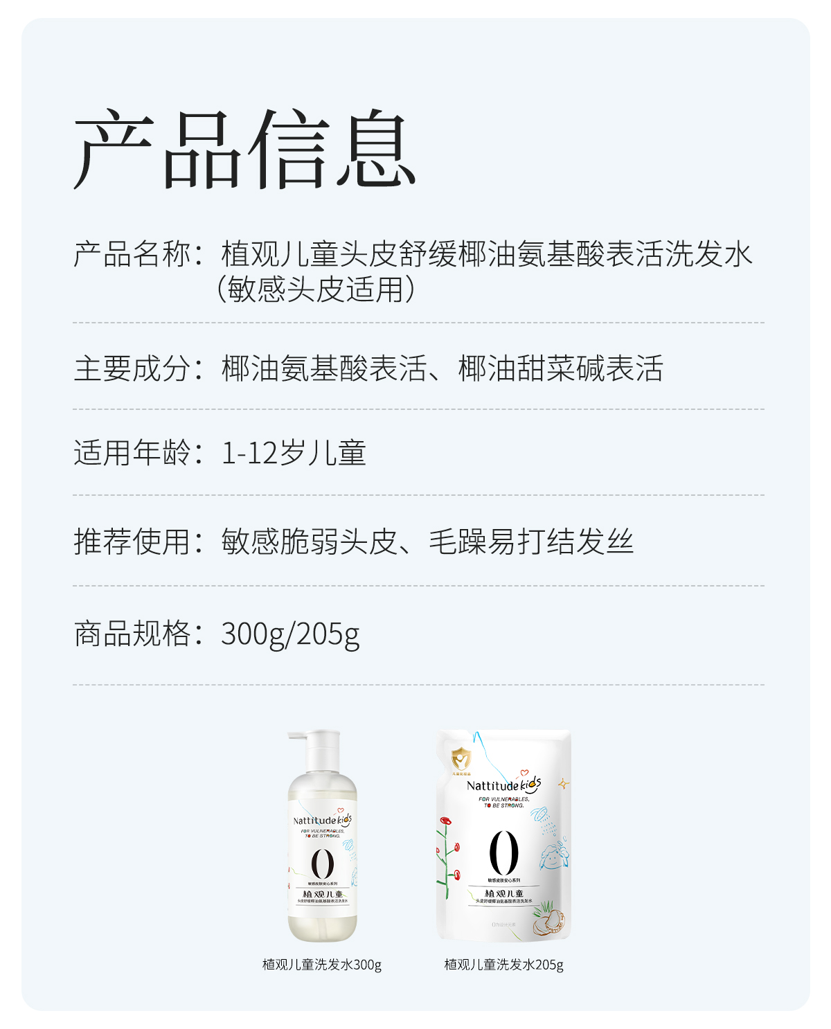 【2.0版本】植观儿童专用氨基酸椰椰洗发水 1-15岁宝宝氨基酸洗发水 男女孩中大童 专研新品(植观官方旗舰店)