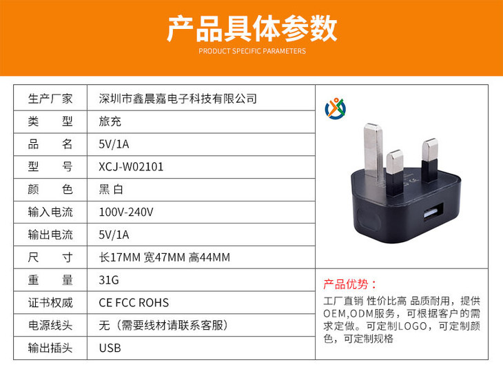 【充电器】三角英规充电器 USB充电头 5V1A充电器