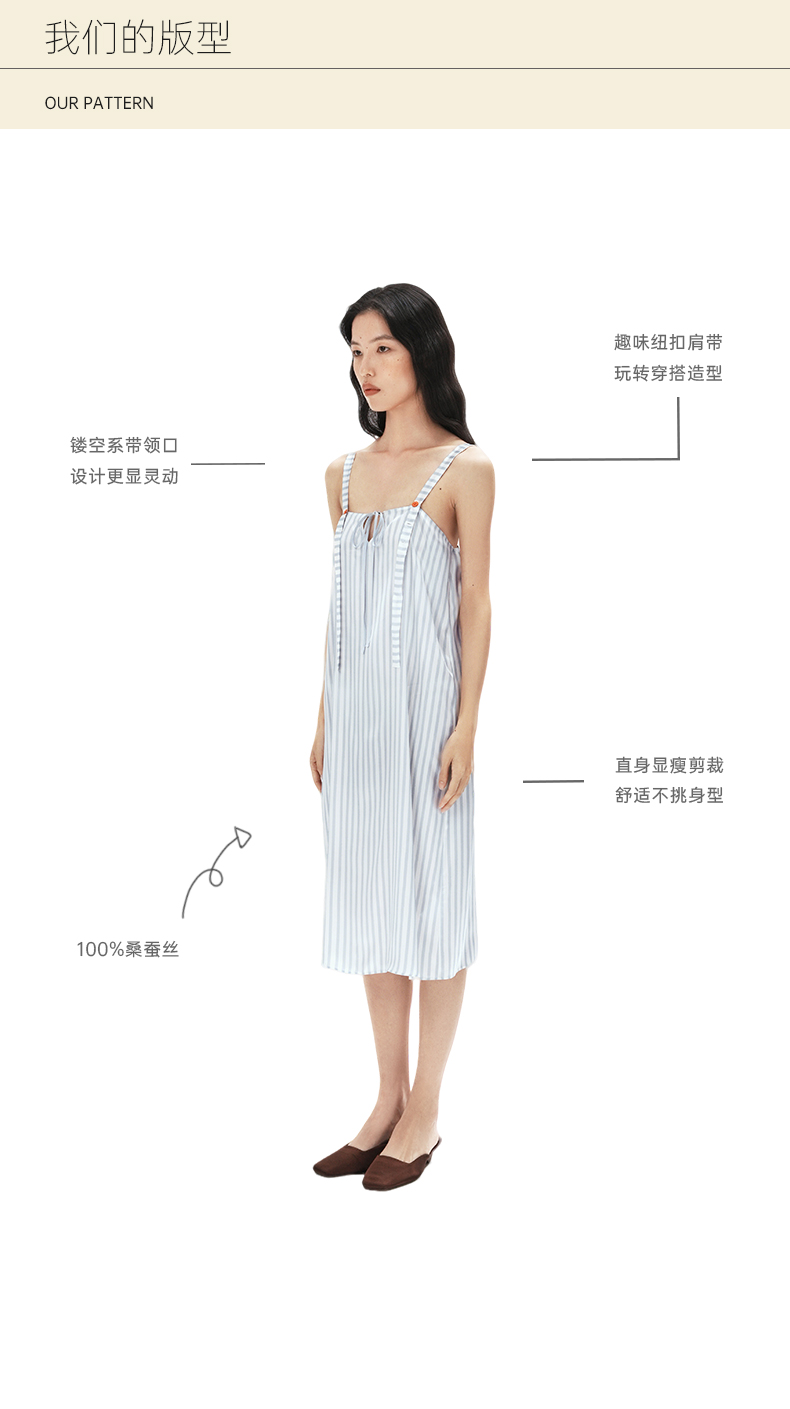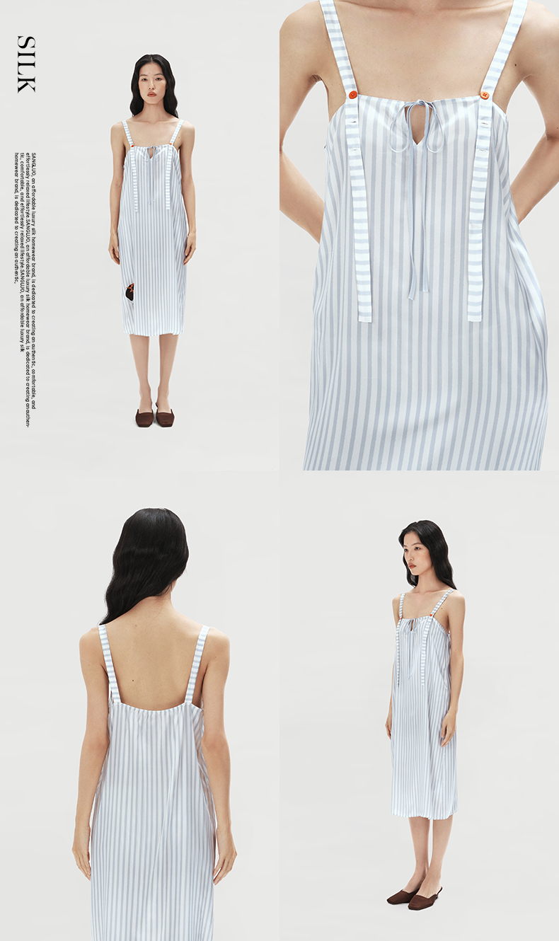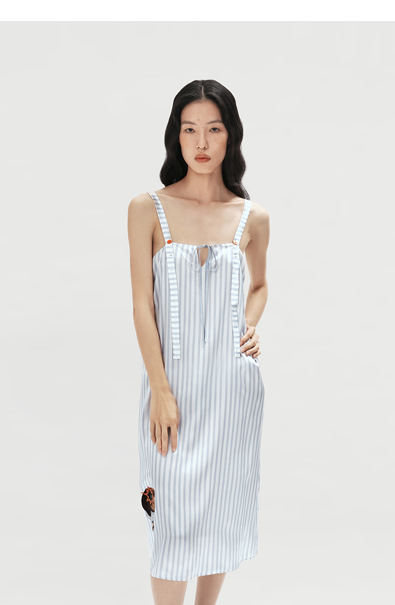 查理小狗』桑罗条纹印花睡裙桑蚕丝女直筒裙可外穿家居服
