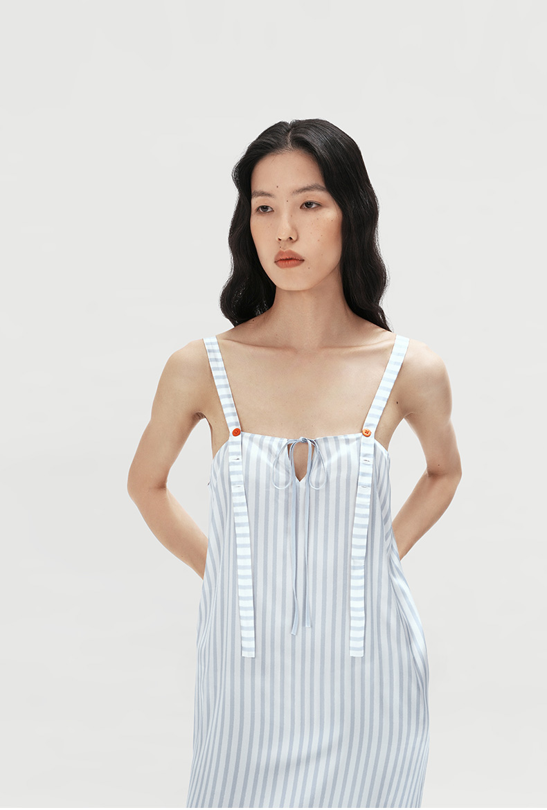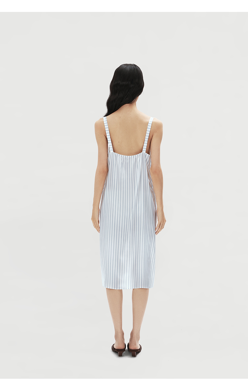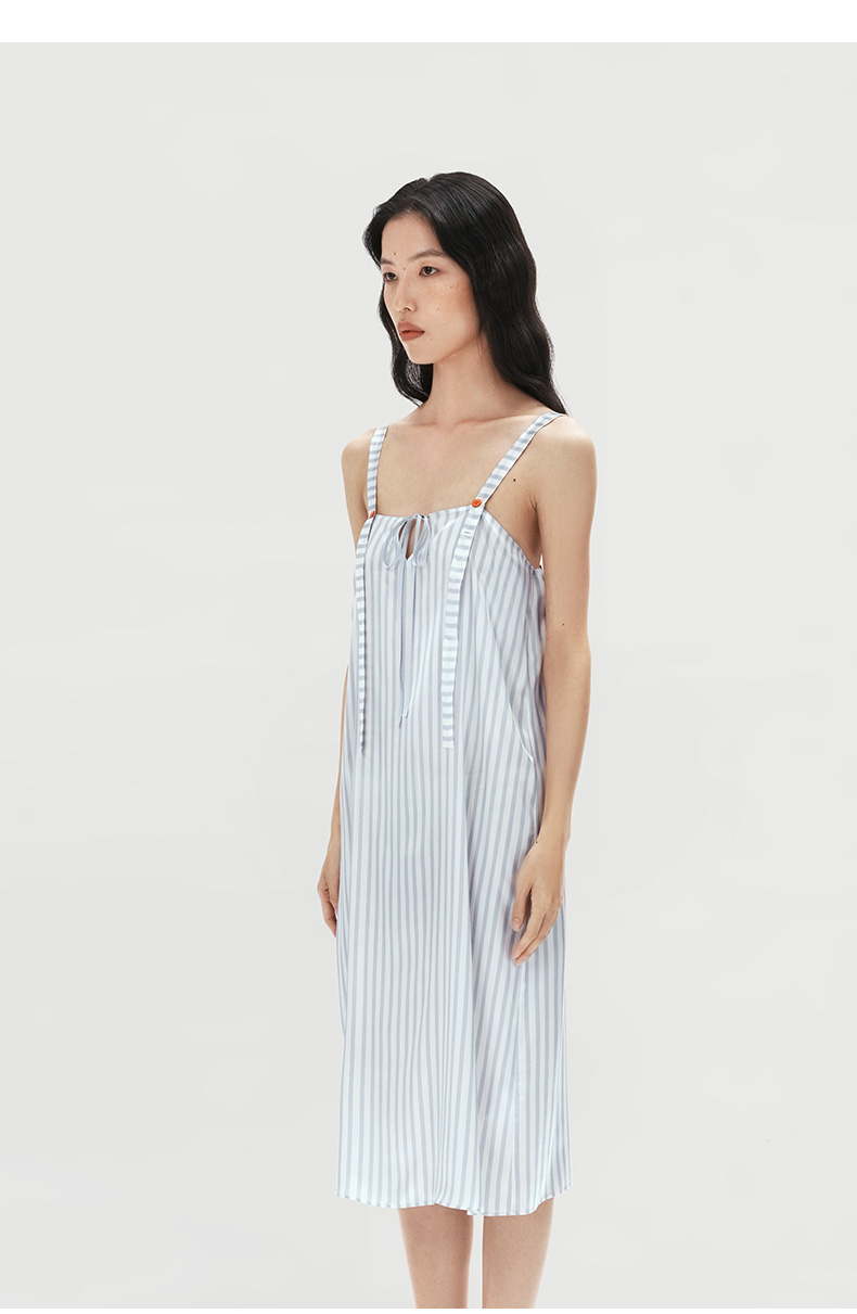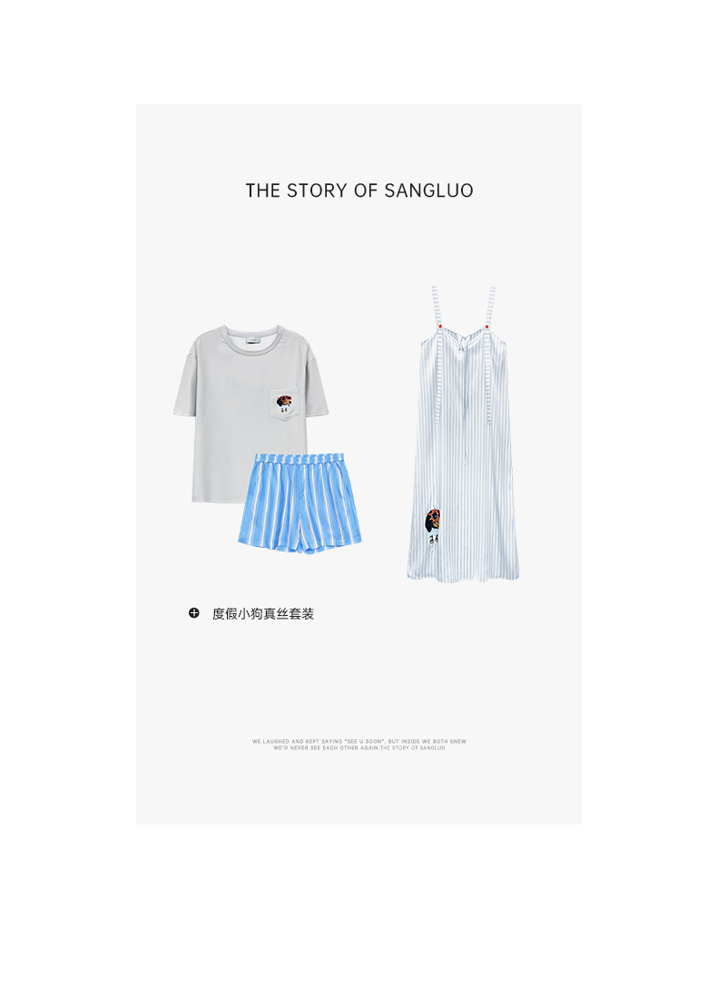 查理小狗』桑罗条纹印花睡裙桑蚕丝女直筒裙可外穿家居服