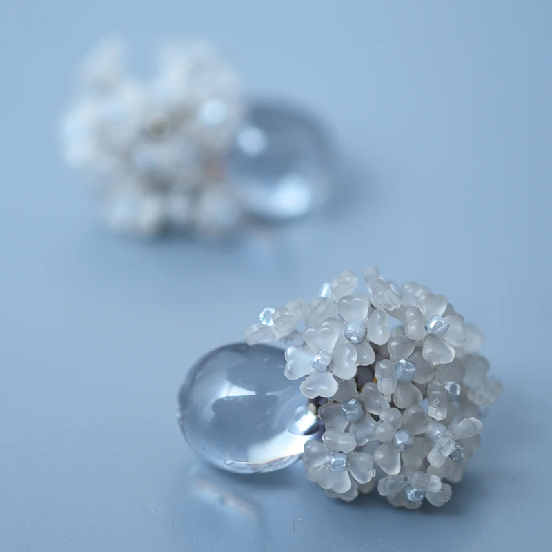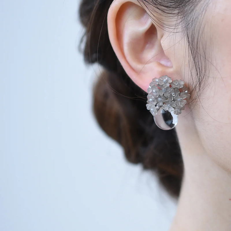 订购8周到|Monshiro-ajisai-绣球 水晶 耳环(灰色)[日本设计师]