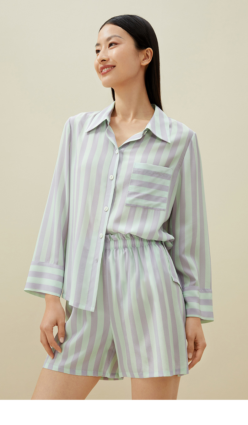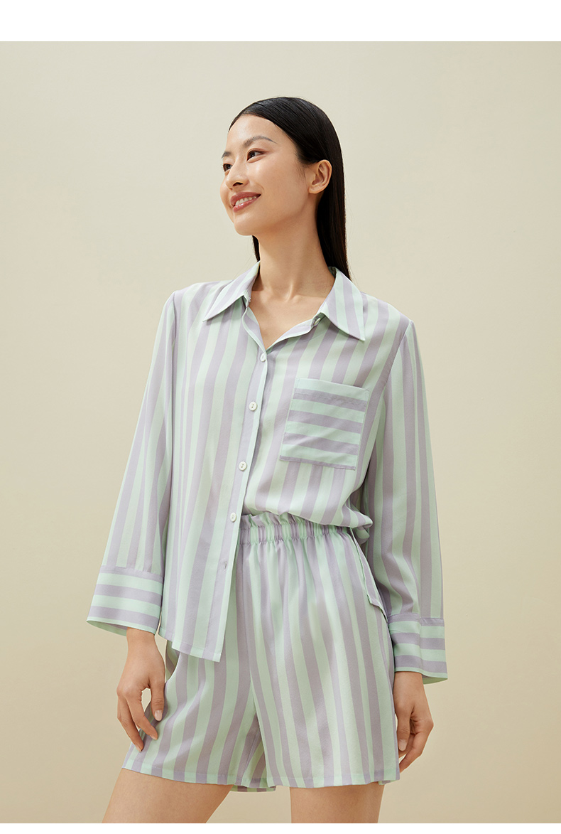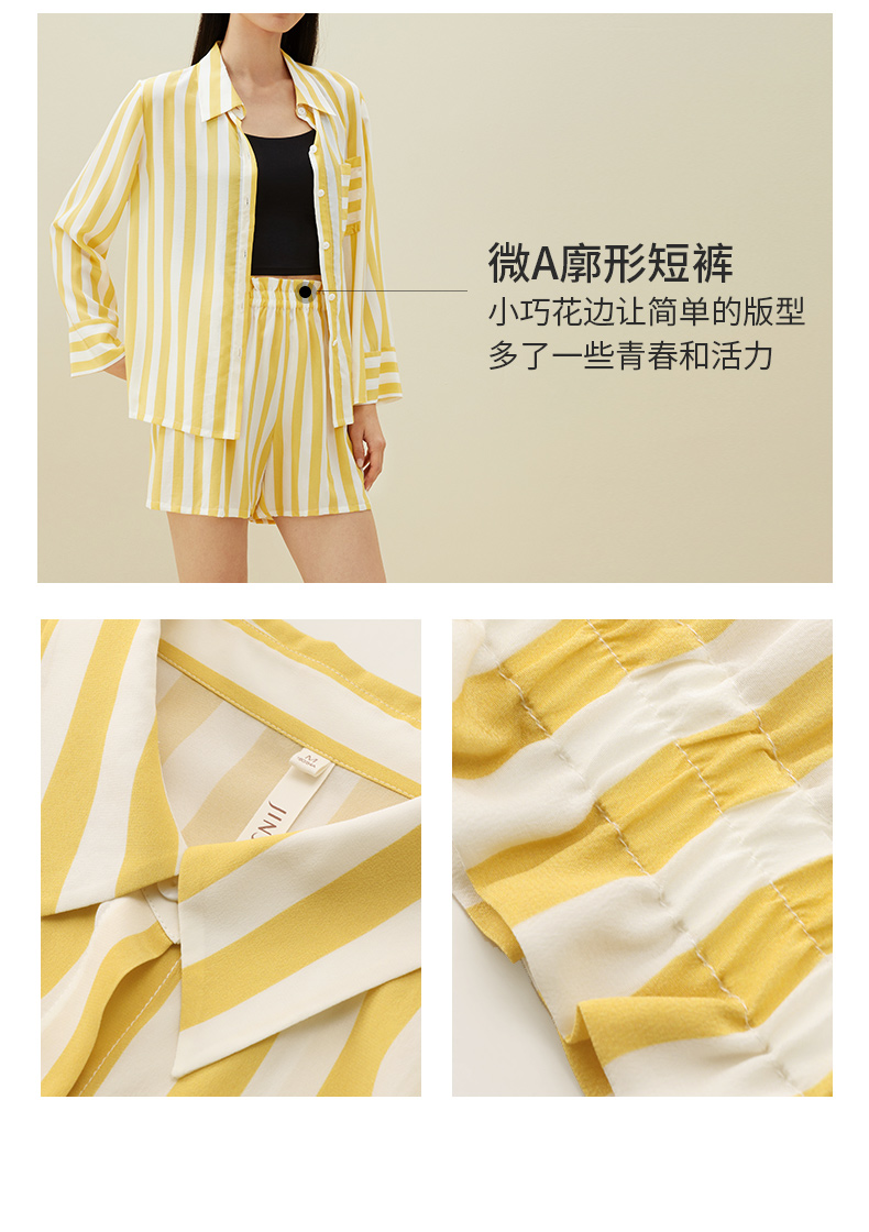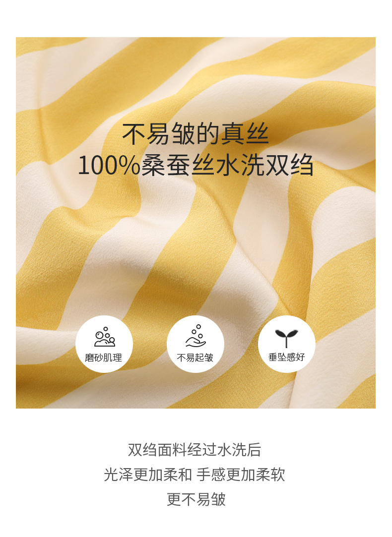 【不易皱真丝】100%桑蚕丝时尚竖条纹可外穿家居服真丝睡衣套装女金三塔 YSFDB201