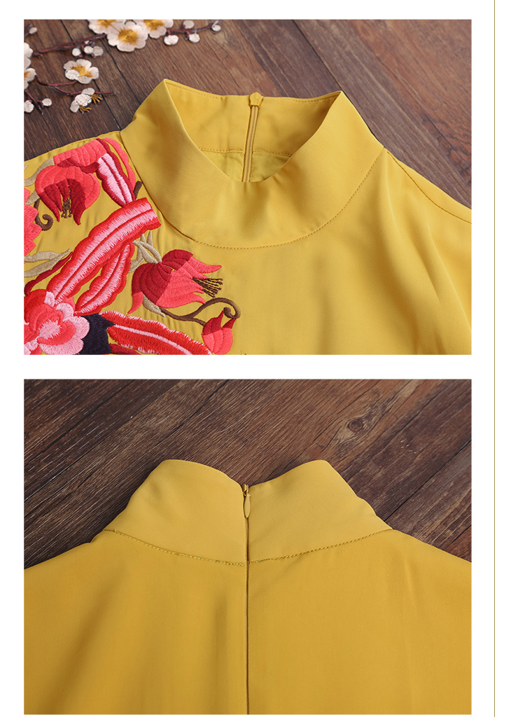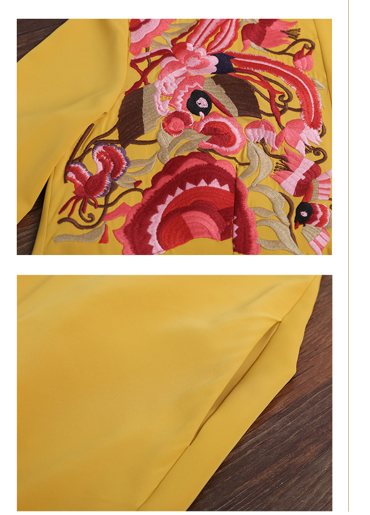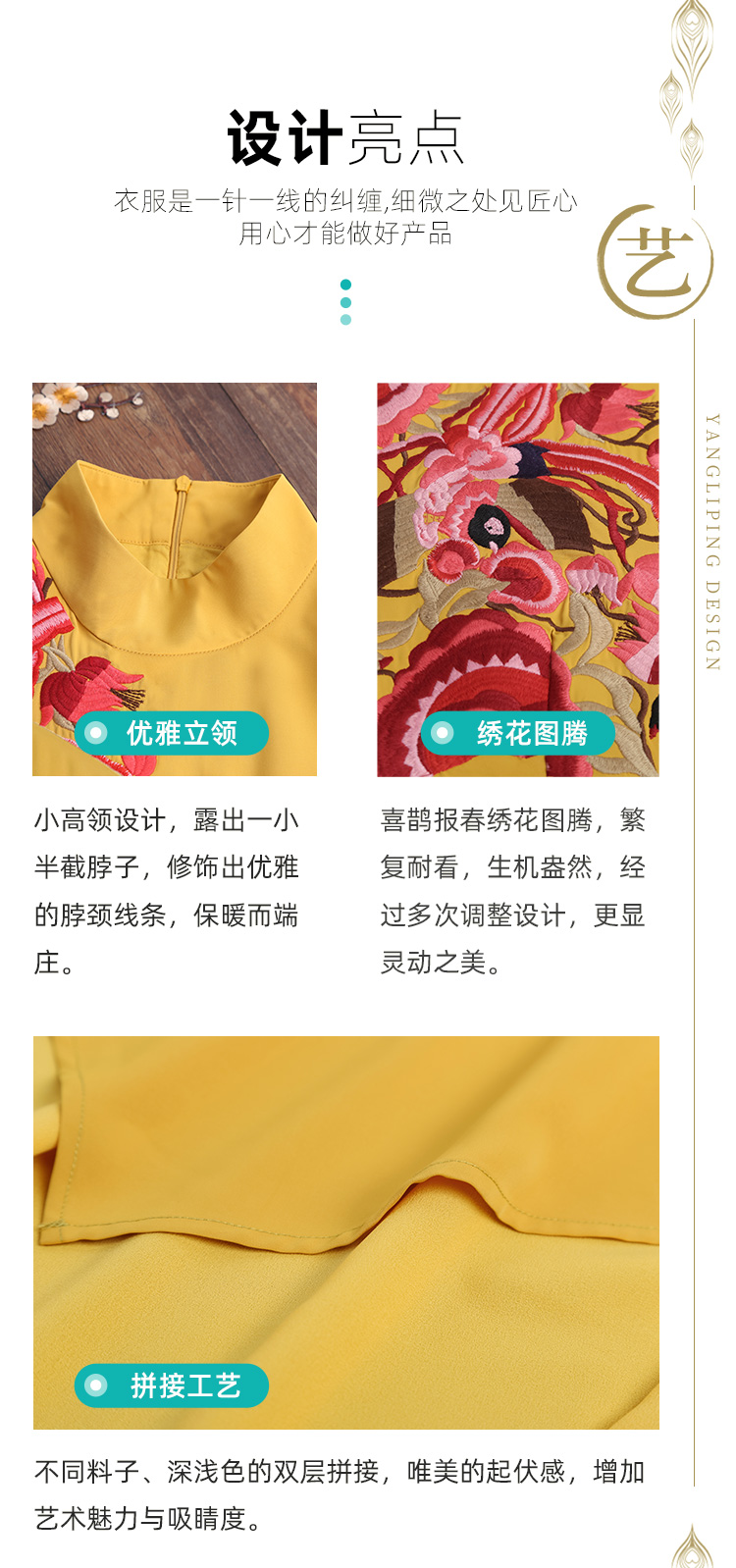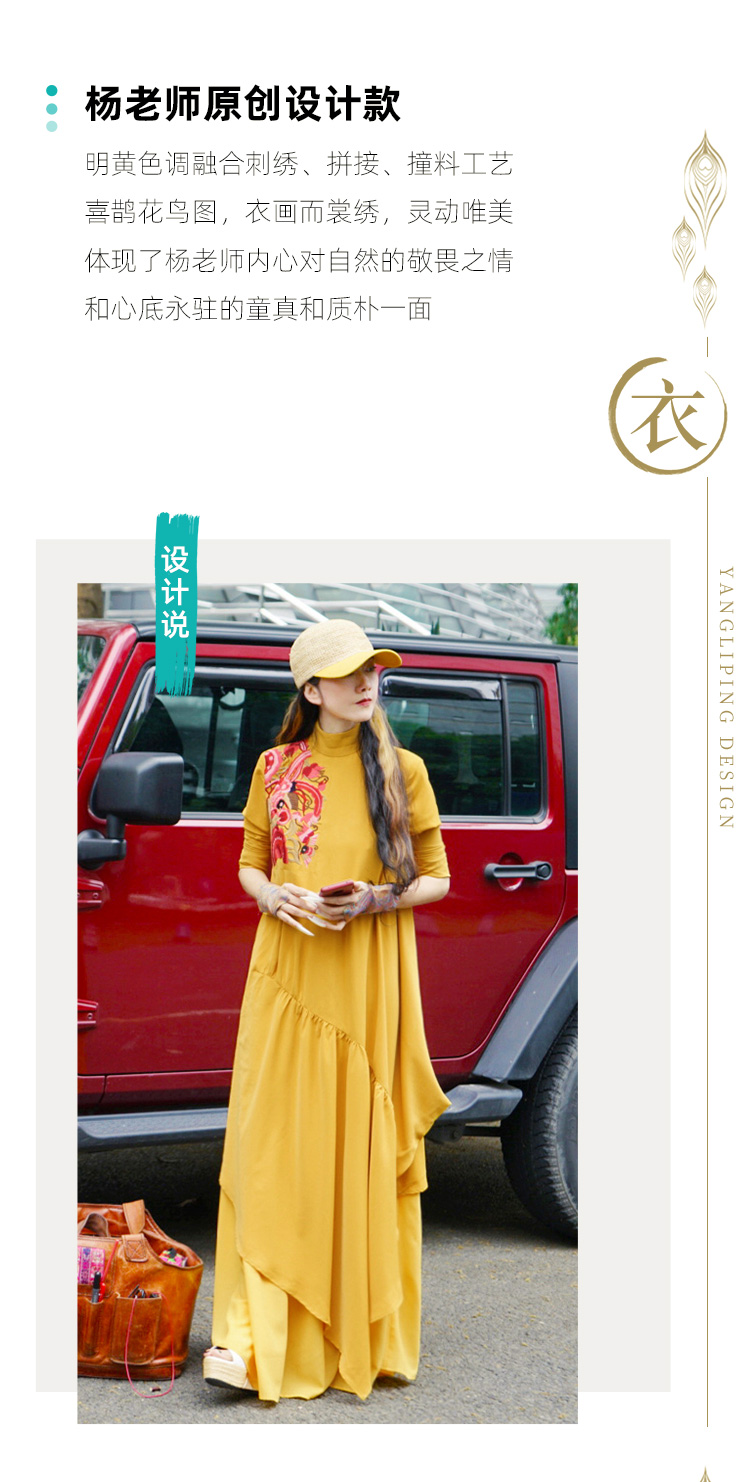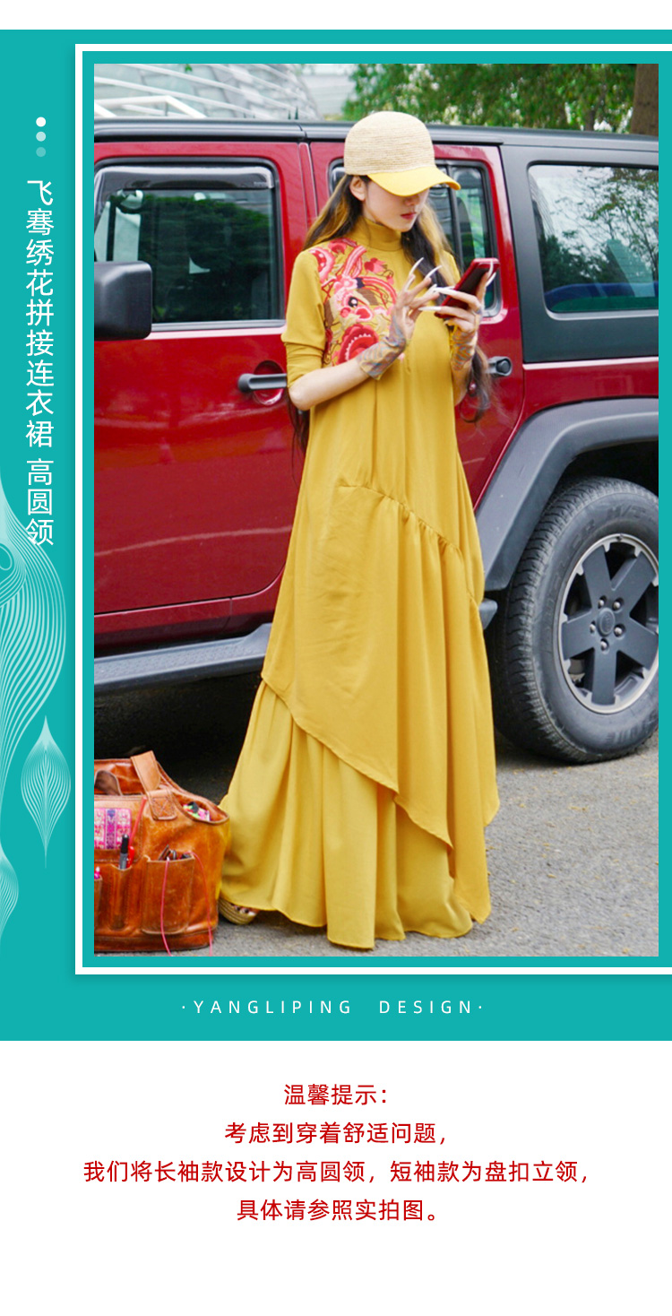 飞骞绣花拼接连衣裙 | 杨丽萍老师同款 | 黄色短袖少量现货