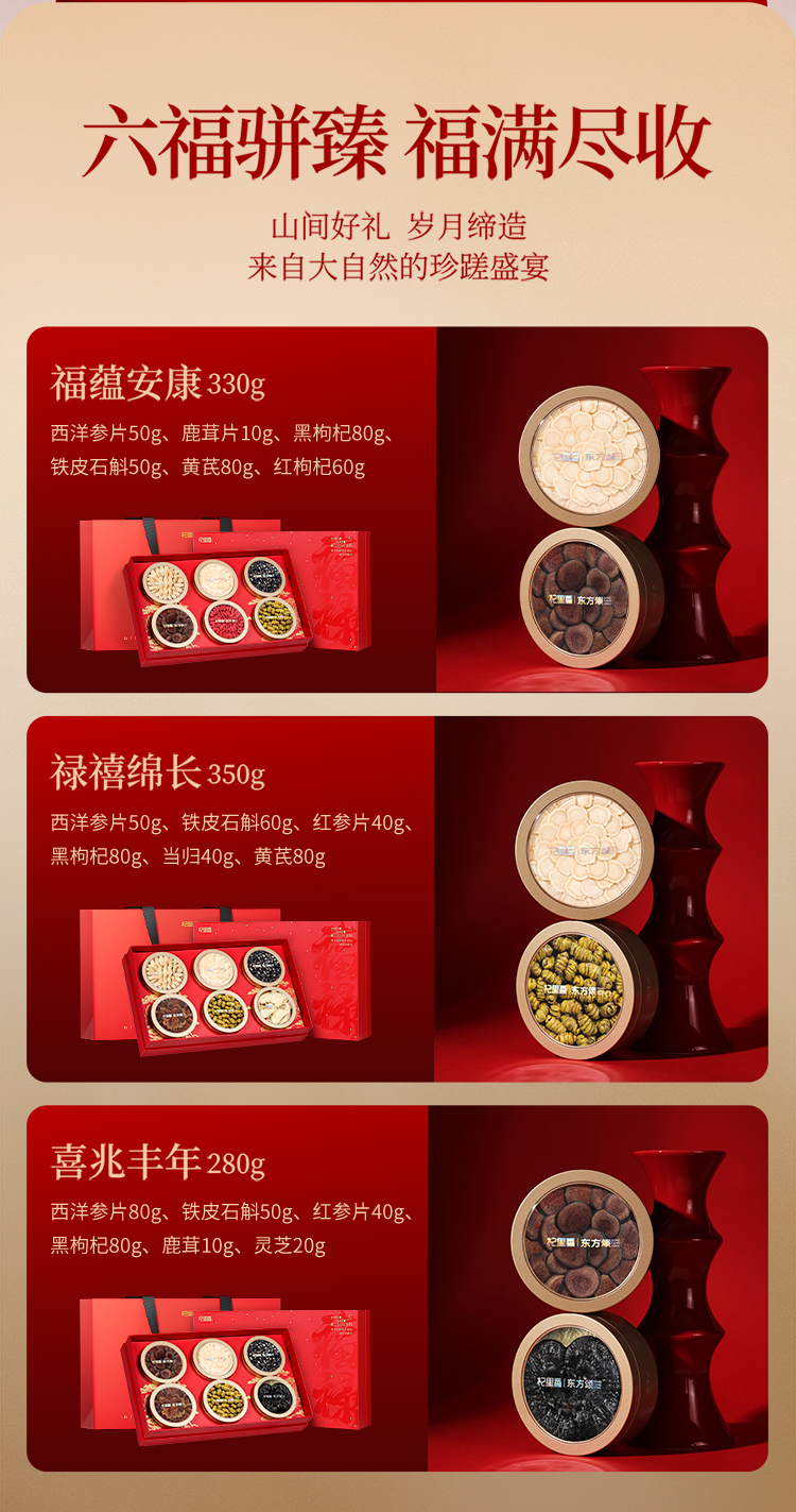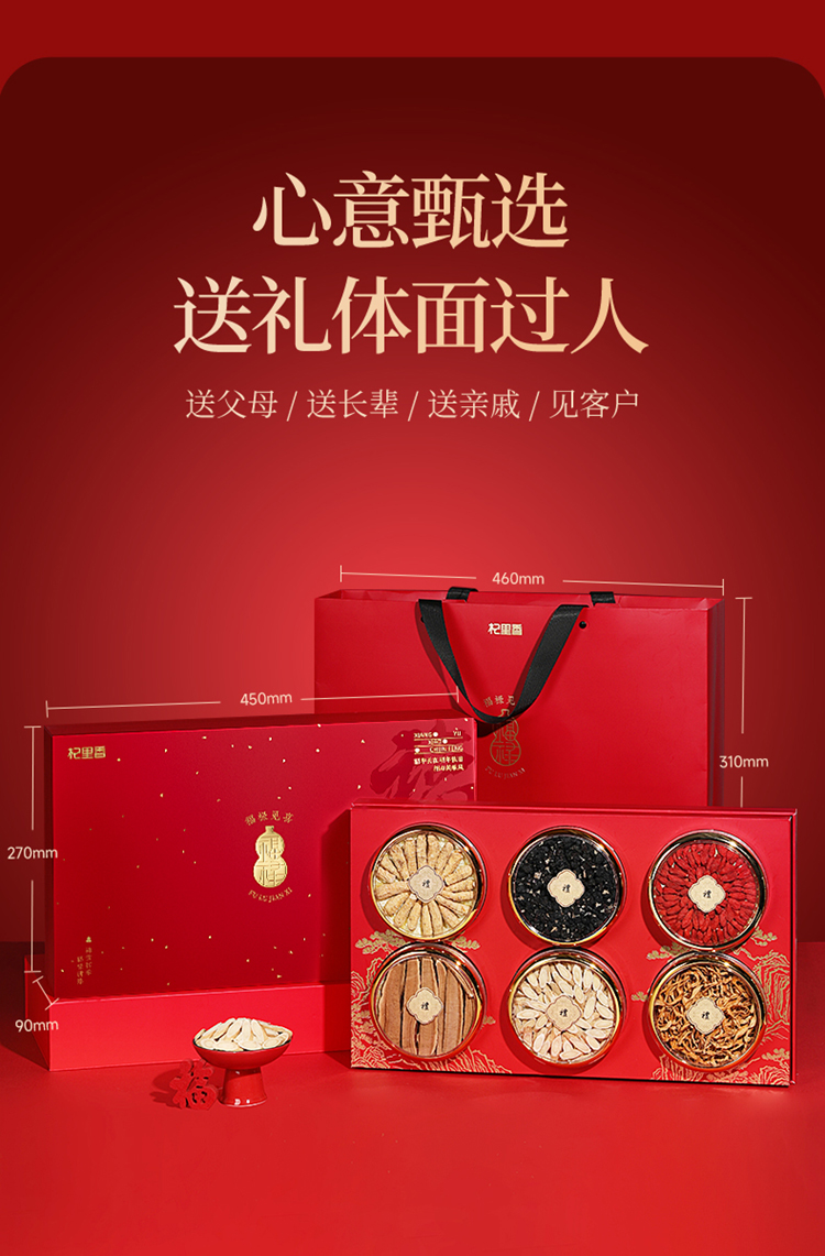 【冬季滋补】杞里香340g,310g,190g,350g,330g,280g福禄见喜6拼礼盒,西洋参段黄芪大片黑枸杞枸杞蛹虫草灵芝片铁皮石斛党参段红参片鹿茸羊肚菌等滋补新年礼盒送礼送爸妈送亲友年货