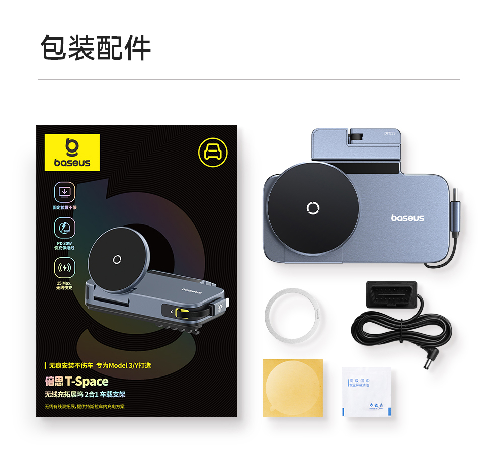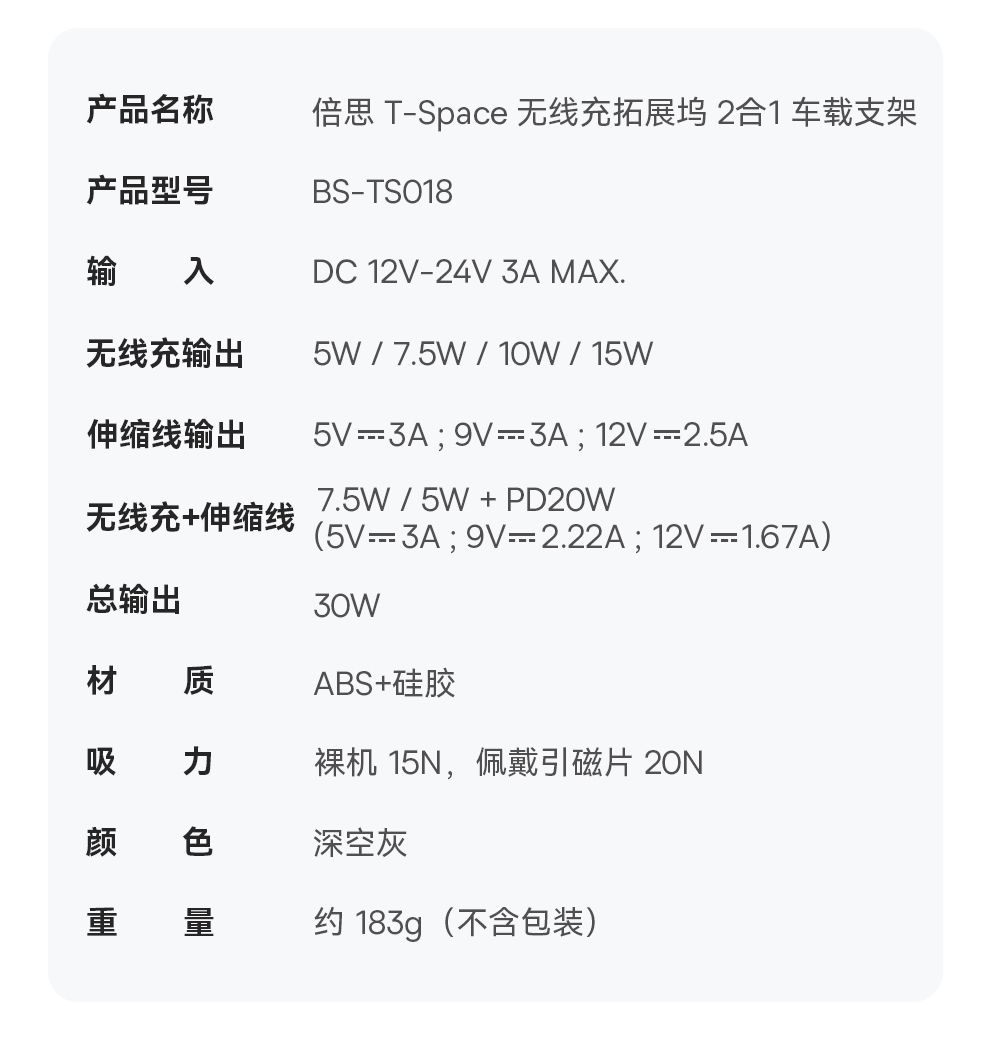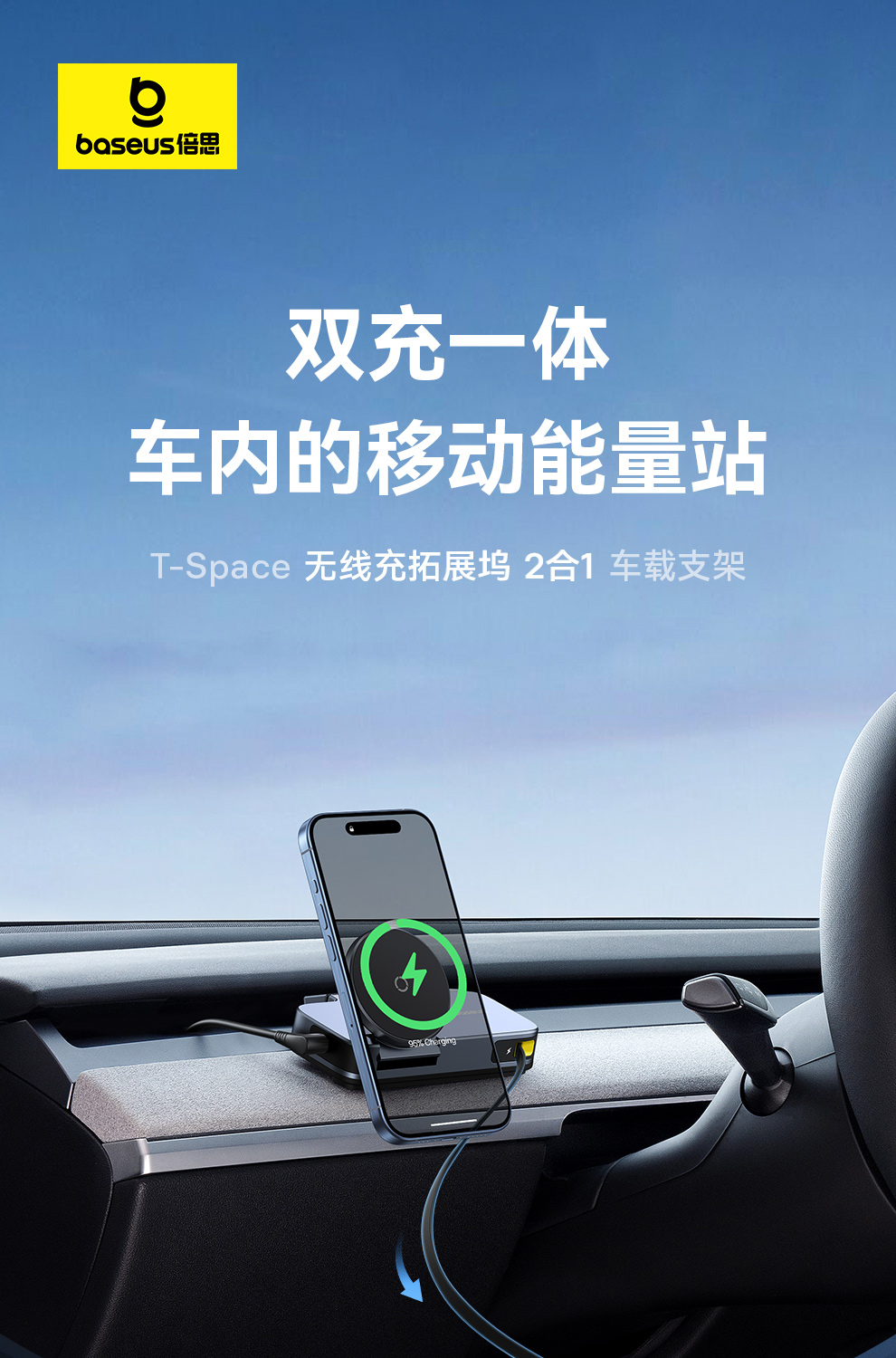 【十一专享】倍思 T-Space 无线充拓展坞 2合1 车载支架