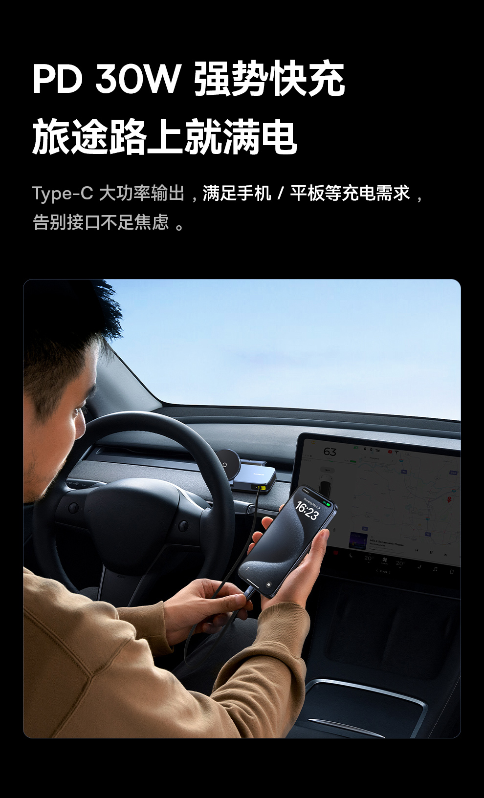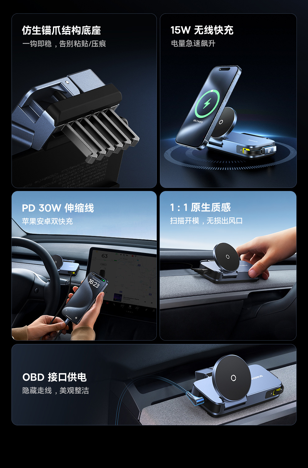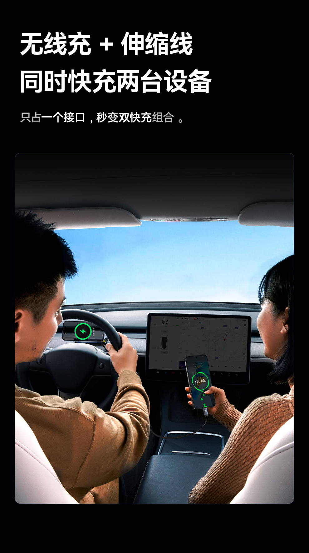 【十一专享】倍思 T-Space 无线充拓展坞 2合1 车载支架