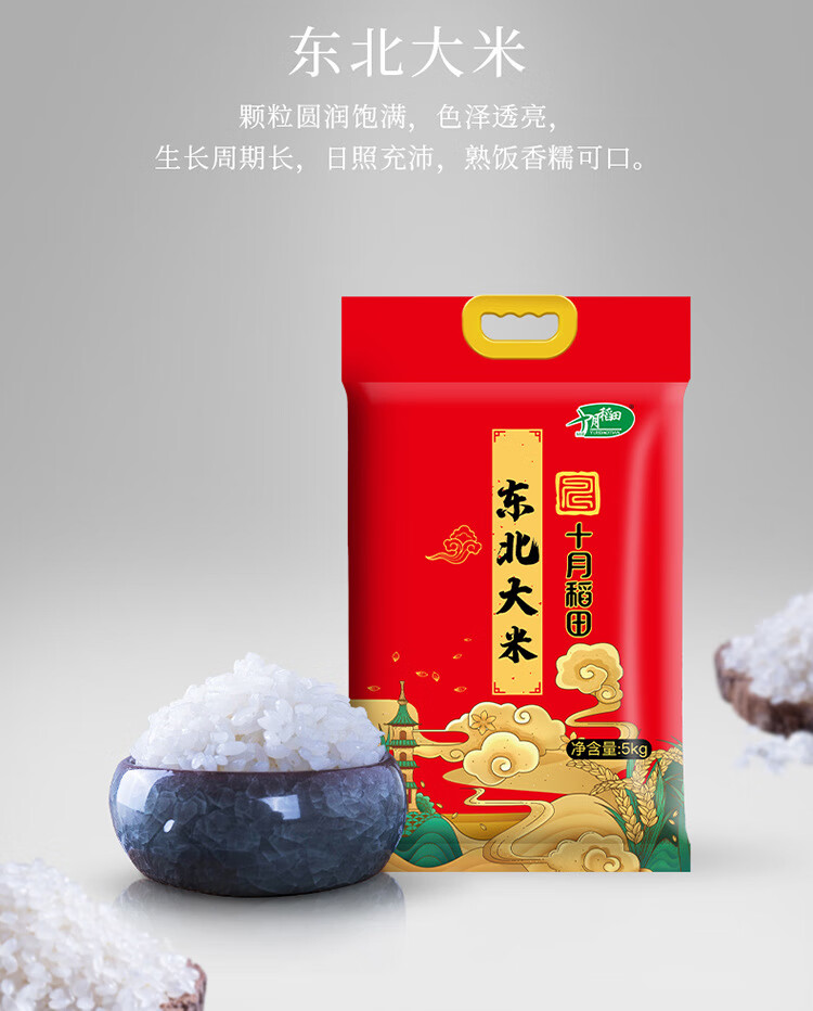 (分2个包裹发货)十月稻田东北大米5kg/袋(焕新版)*2 +贝蒂斯橄榄葵花食用植物油600ml*2礼盒【LXYGCJ1.5】