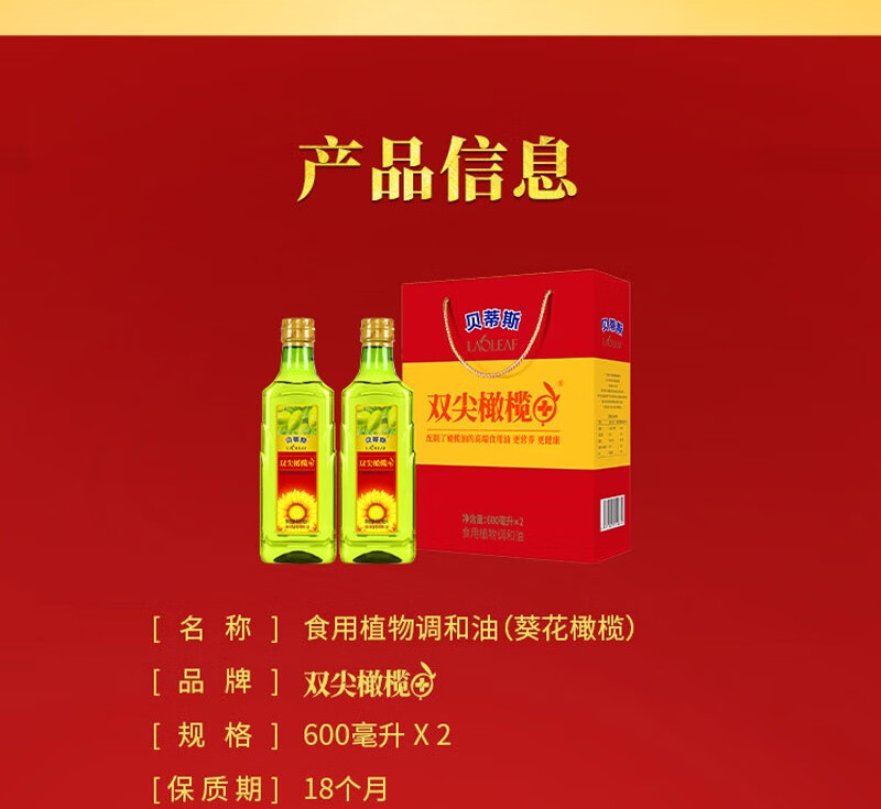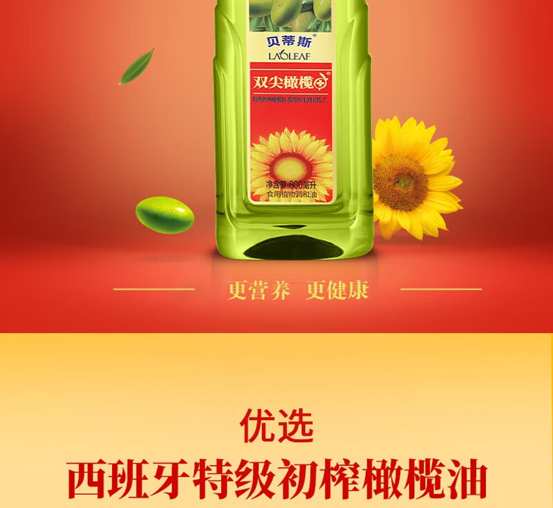 贝蒂斯橄榄葵花食用植物油600ml*2礼盒