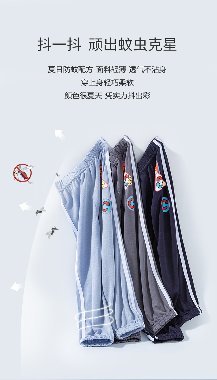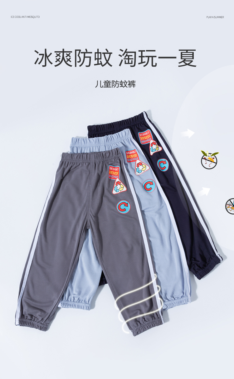 贝贝怡2022新品男童防蚊裤清爽凉快宝宝长裤时尚休闲裤