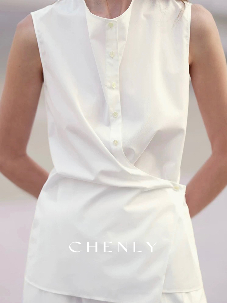 不退不换!尘衣|25春夏立裁纸感匹马棉围裹无袖上衣