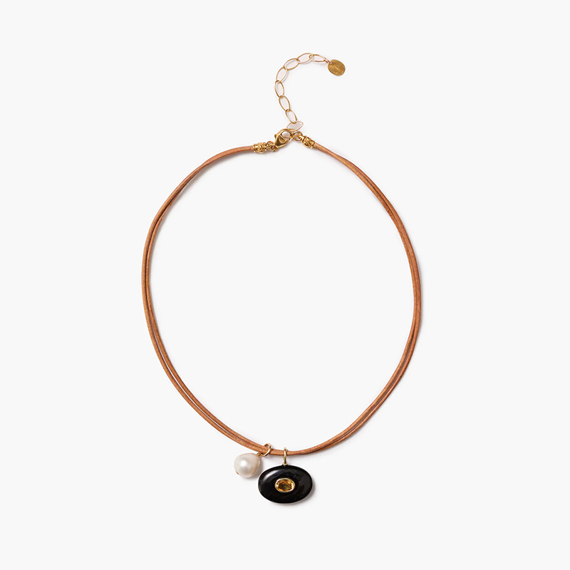 订购6周到|Chan Luu-Seed-种子 淡水珍珠 黄水晶 缟玛瑙 皮革绳 双层 项链[美国设计师]