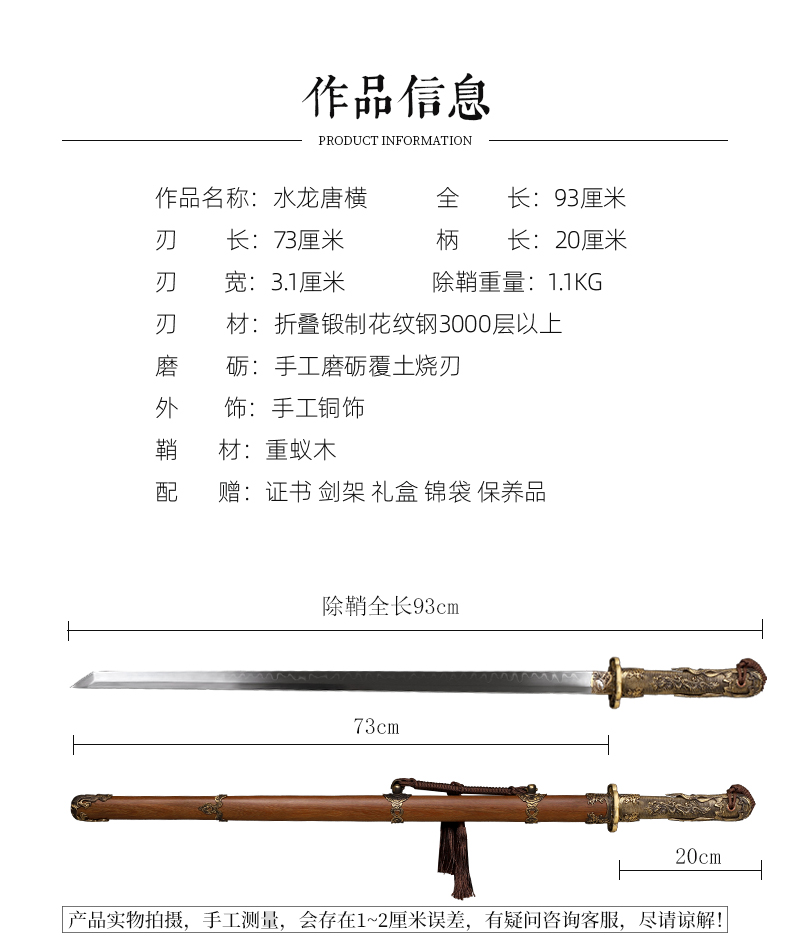 水龙唐横刀剑汉唐宝剑龙泉沈广隆宝剑一体刀剑防身冷兵器 未开刃
