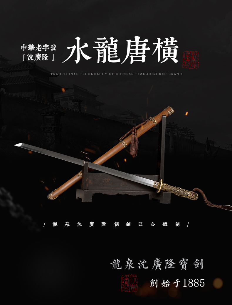 - 龙泉沈广隆剑舖创始于1885年(清光绪)位于浙江省龙泉市,是当地唯一一家“子承父业”一脉相承的中华老字号宝剑生产企业,是国家级非物质文化遗产龙泉宝剑项目保护单位,并以“天下第一剑”闻名于海内外....