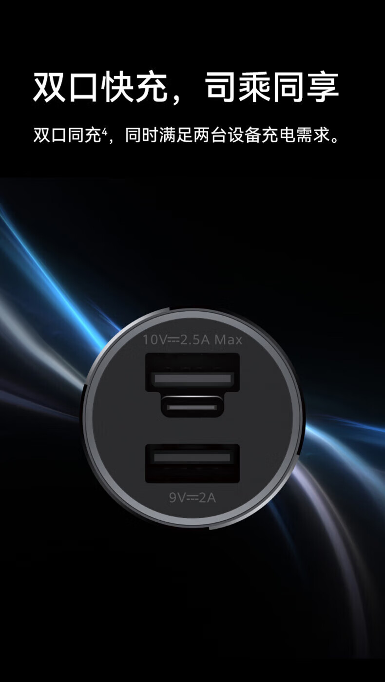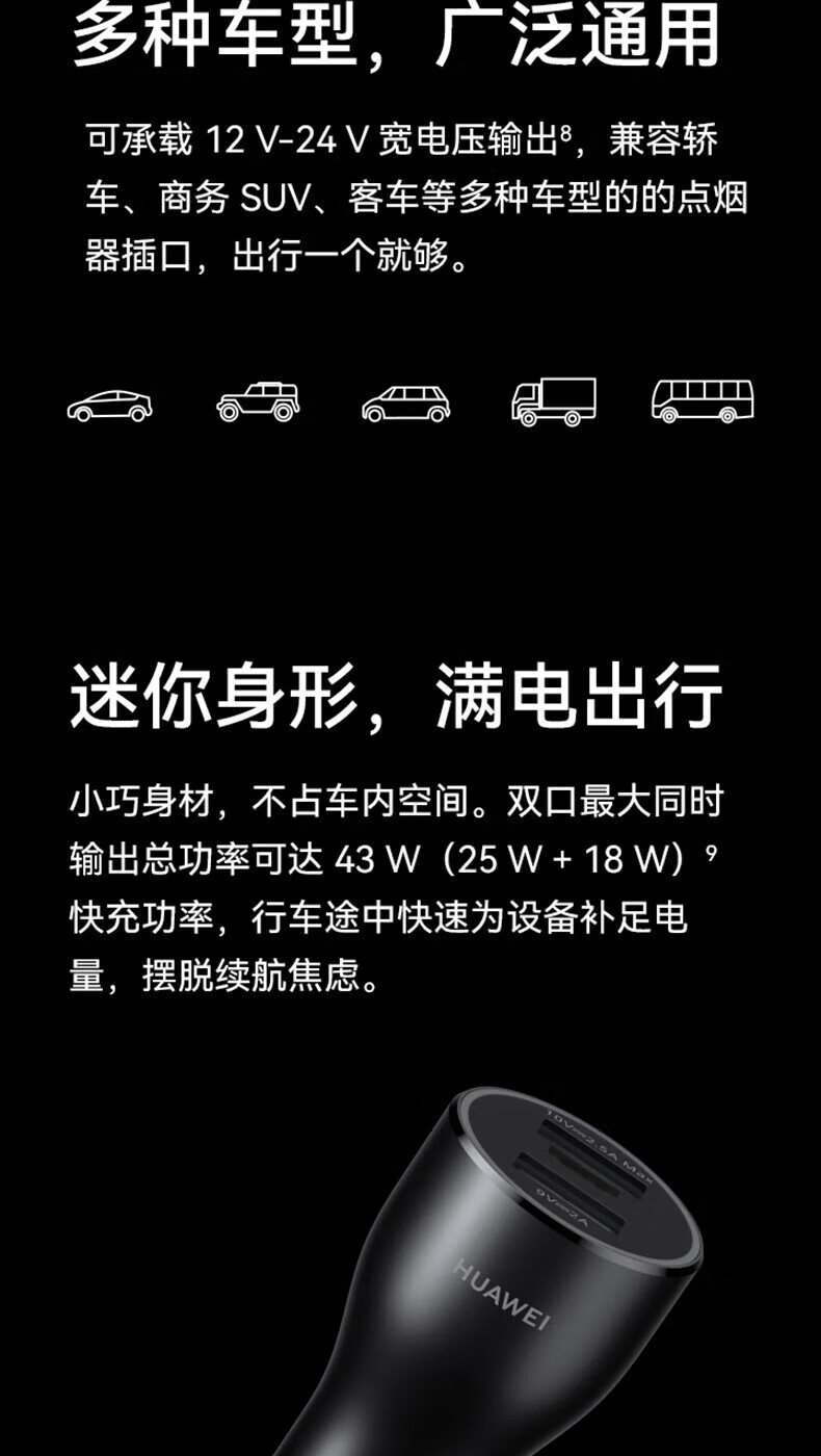 【积分兑换】华为(HUAWEI)车载全能充(Max 25W)汽车点烟器接口 双口快充输出 P0014
