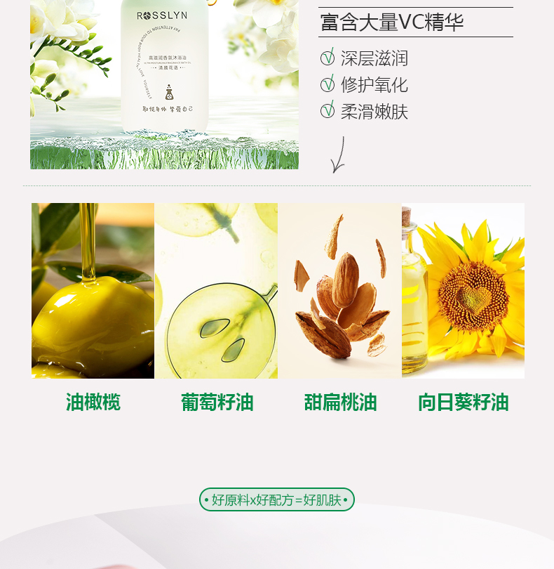 【品名】法国罗斯琳高滋香氛沐浴油 以油养肤 深层滋润 300ml/瓶 【规格】邂逅微醺、清晨花语、月色伴曲 【备案编号】 粤G妆网备字2023159041 粤G妆网备字2023159040 粤G妆网备字2023159015 【执行标准】GB/T 34857 【产地】国内 【保质期】5年 【发货包装】独立包装 【发货地】广东 【发货快递】韵达、极兔随机发 【不发货区域】新疆、西藏、港澳台 【发货时效】48-72小时,周末节假日顺延 |