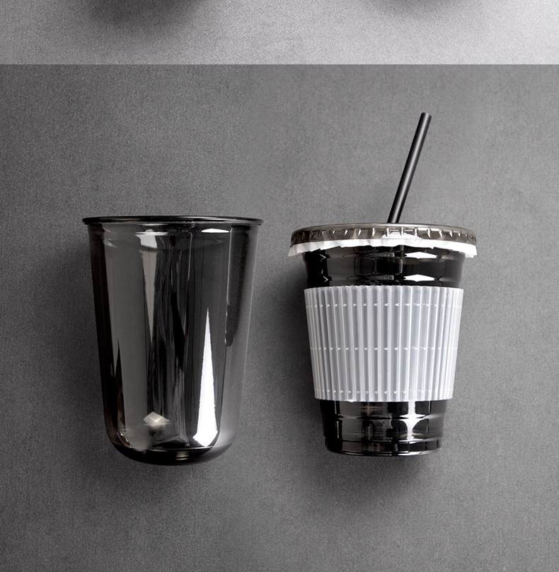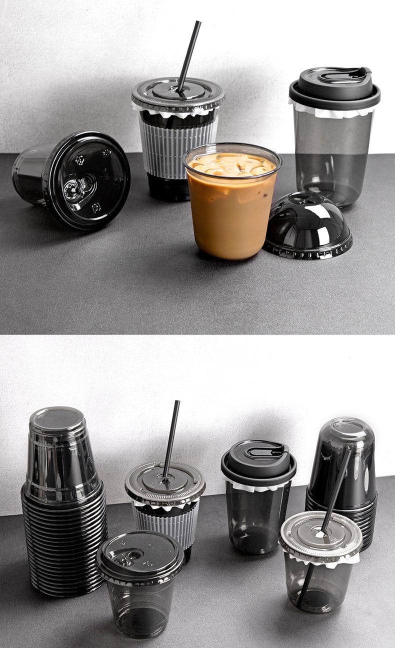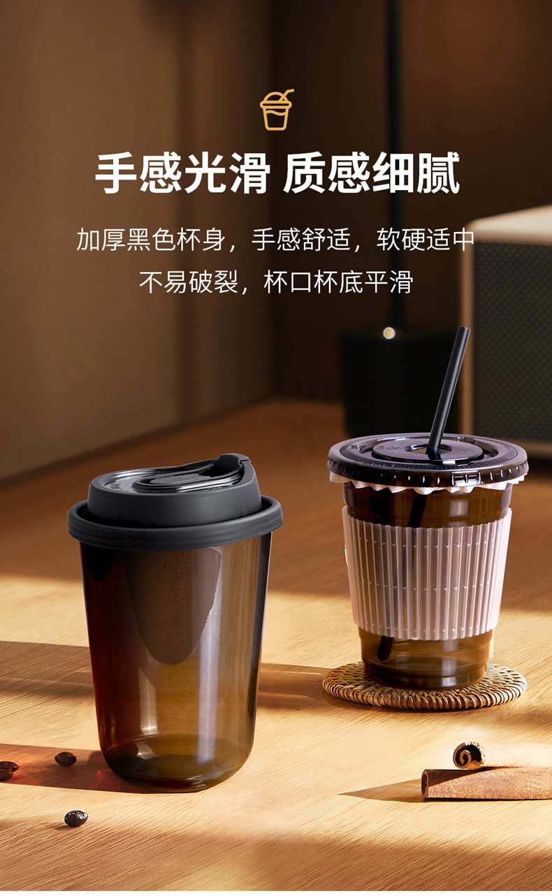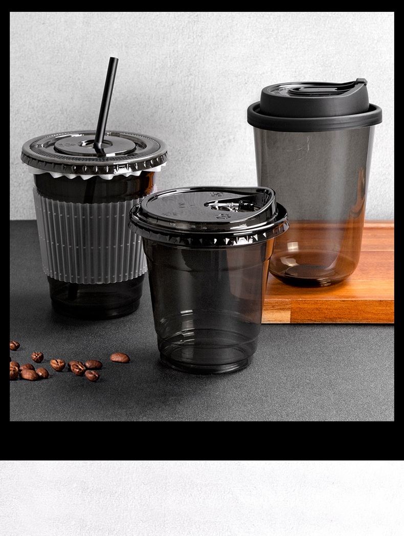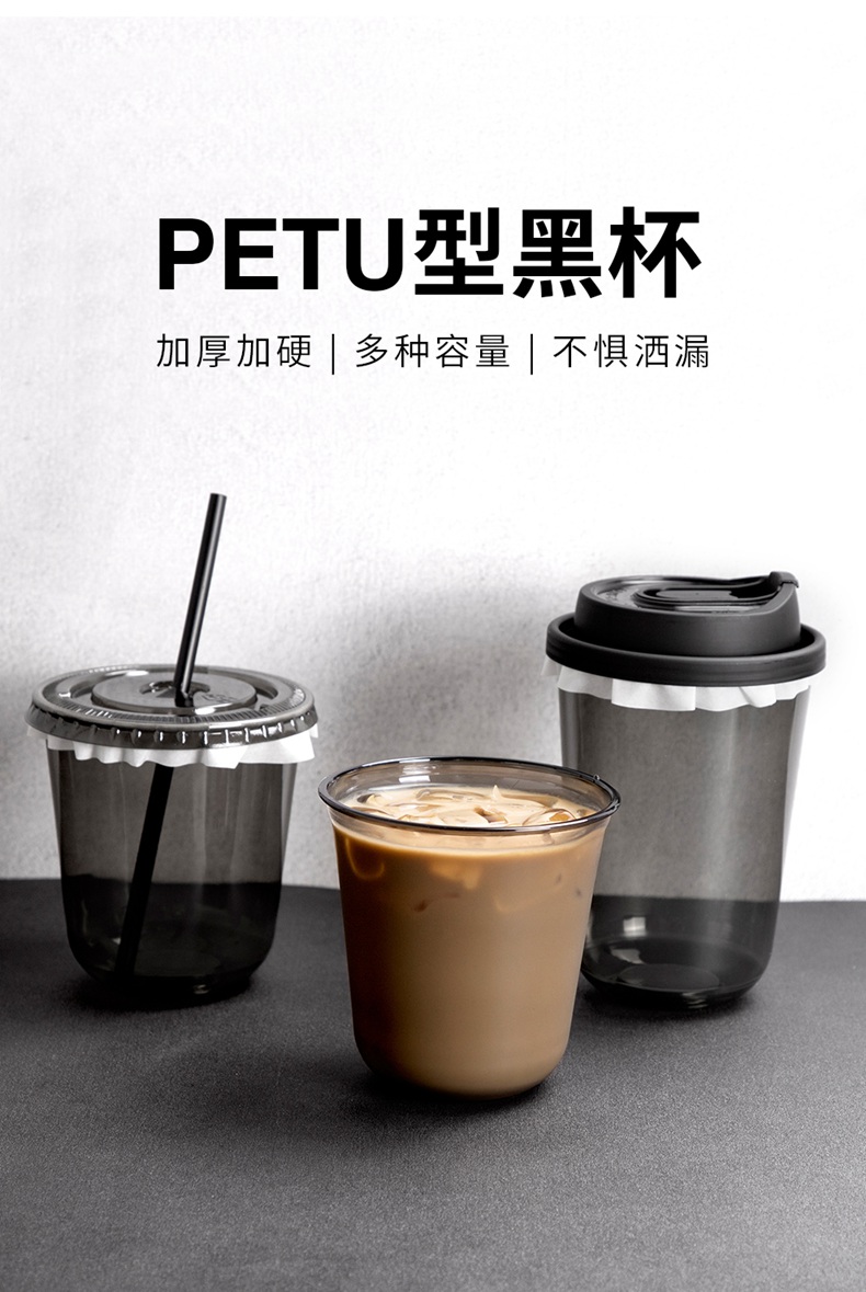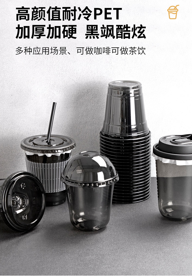 喇叭花冰咖啡杯黑色冷饮杯pet塑料小黑杯一次性饮料杯奶茶杯100个