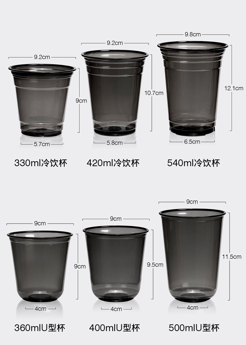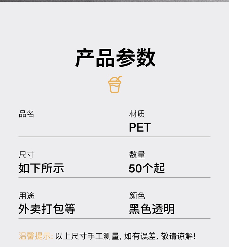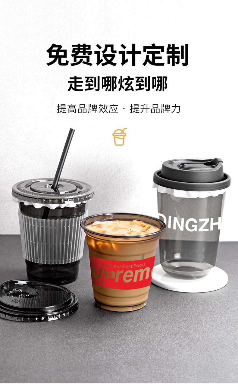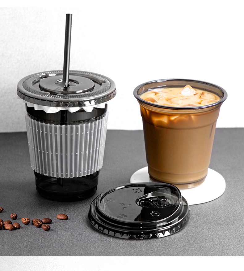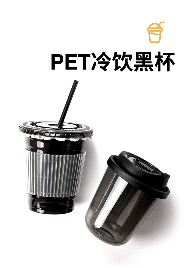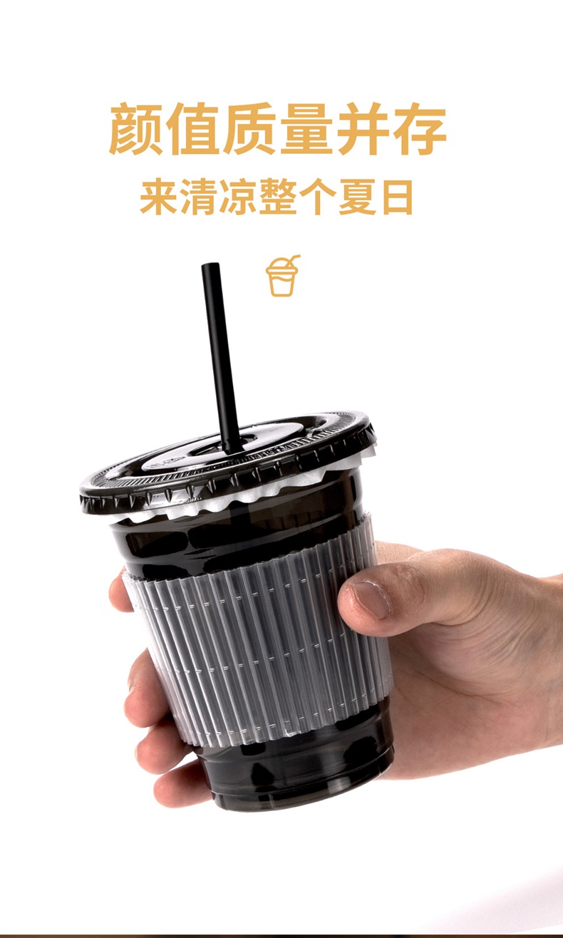 喇叭花冰咖啡杯黑色冷饮杯pet塑料小黑杯一次性饮料杯奶茶杯100个