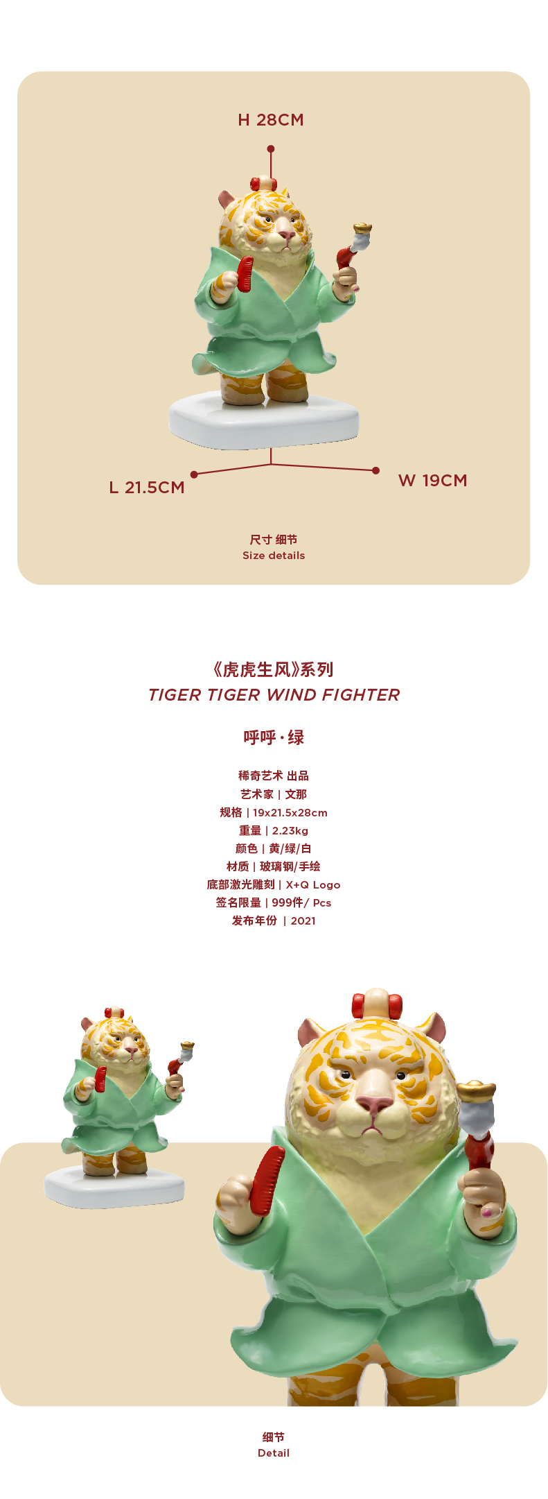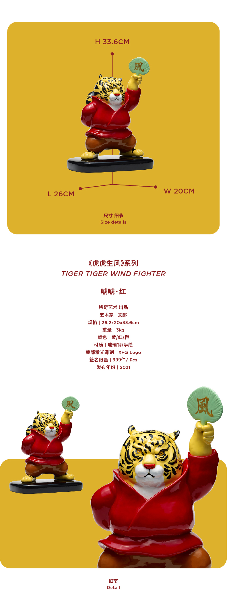 稀奇艺术文那虎年新品《虎虎生风》家居装饰桌面艺术摆件收藏雕塑
