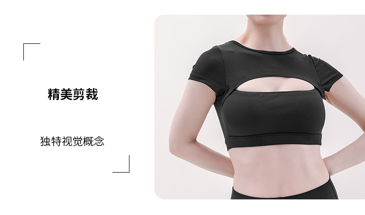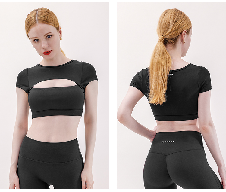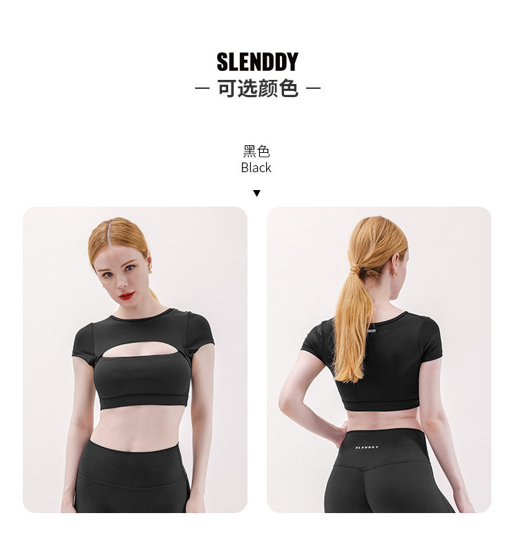 SLENDDY运动健身短袖缕空上衣女性感瑜伽含胸垫T恤 S2009