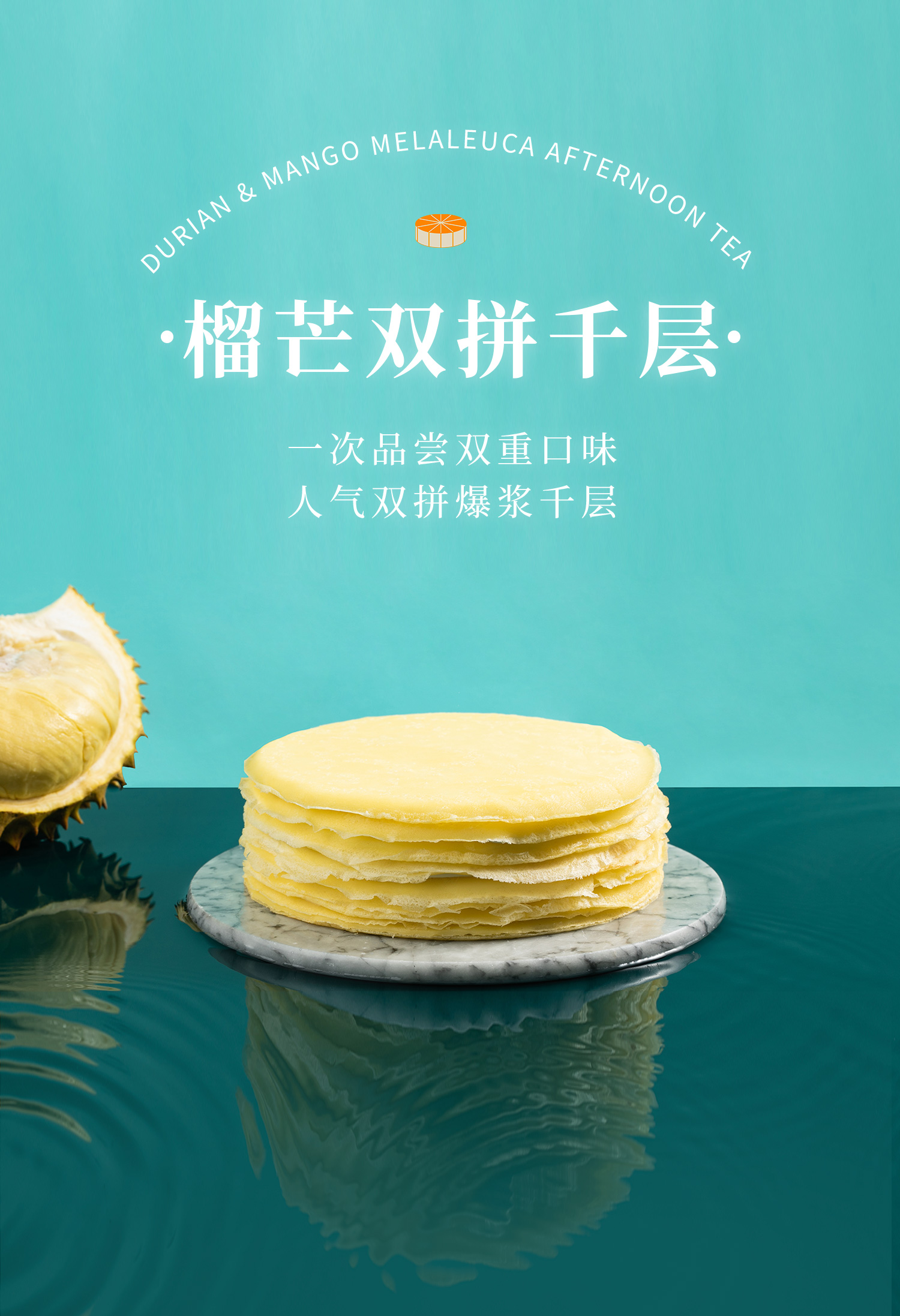 【千层爱好者推荐】6英寸榴芒双拼千层/榴莲千层/芒果千层下午茶,3种口味任你选,体验多层快乐!(哈尔滨幸福西饼)