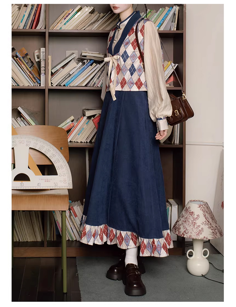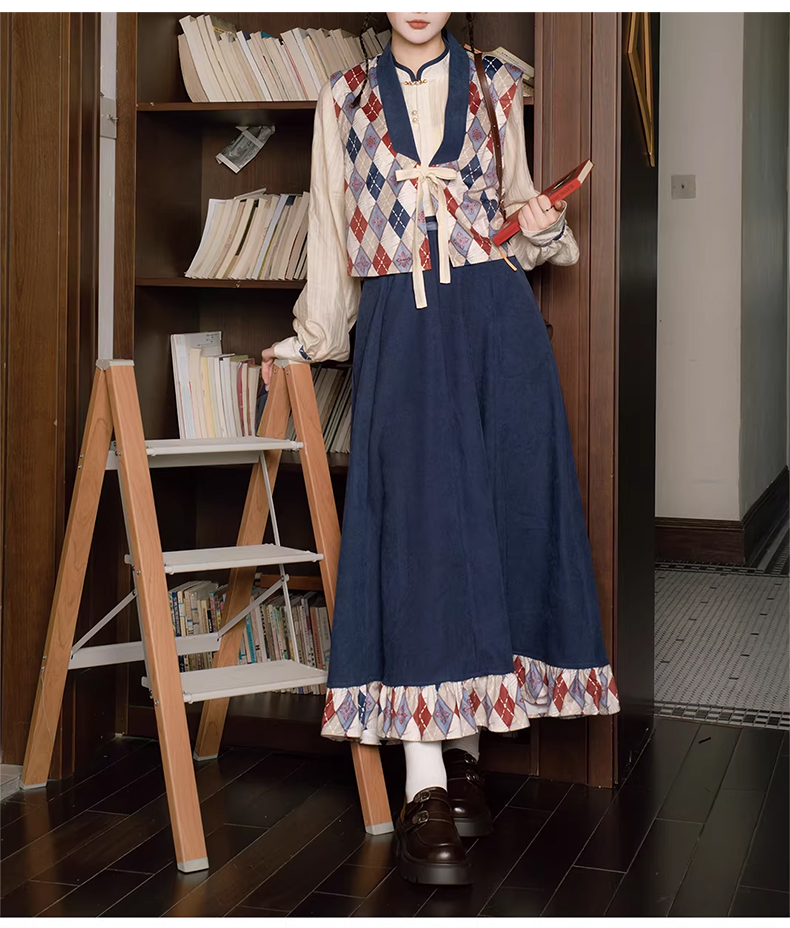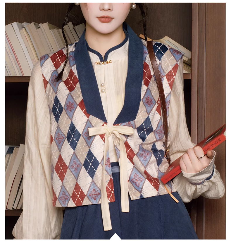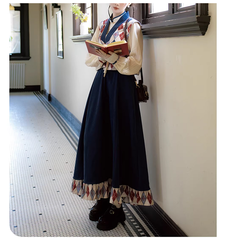裁缝学苑AQ596天丝衬衣格纹马甲半身裙立领衬衫套装纸样三件套样板