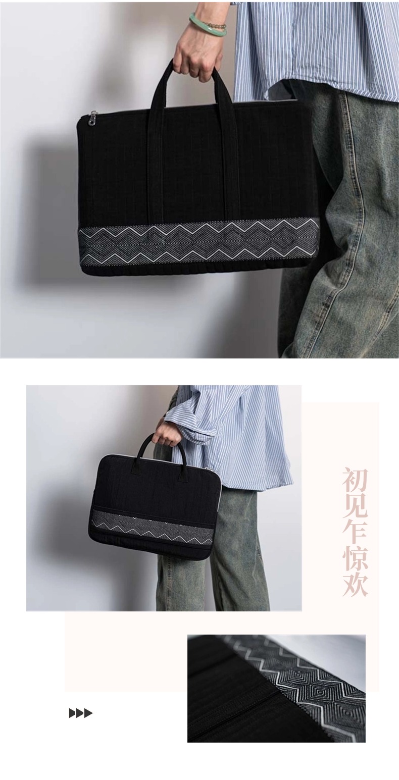 【梭说】商务出行必备手工侗锦水波纹电脑公文包轻便耐用