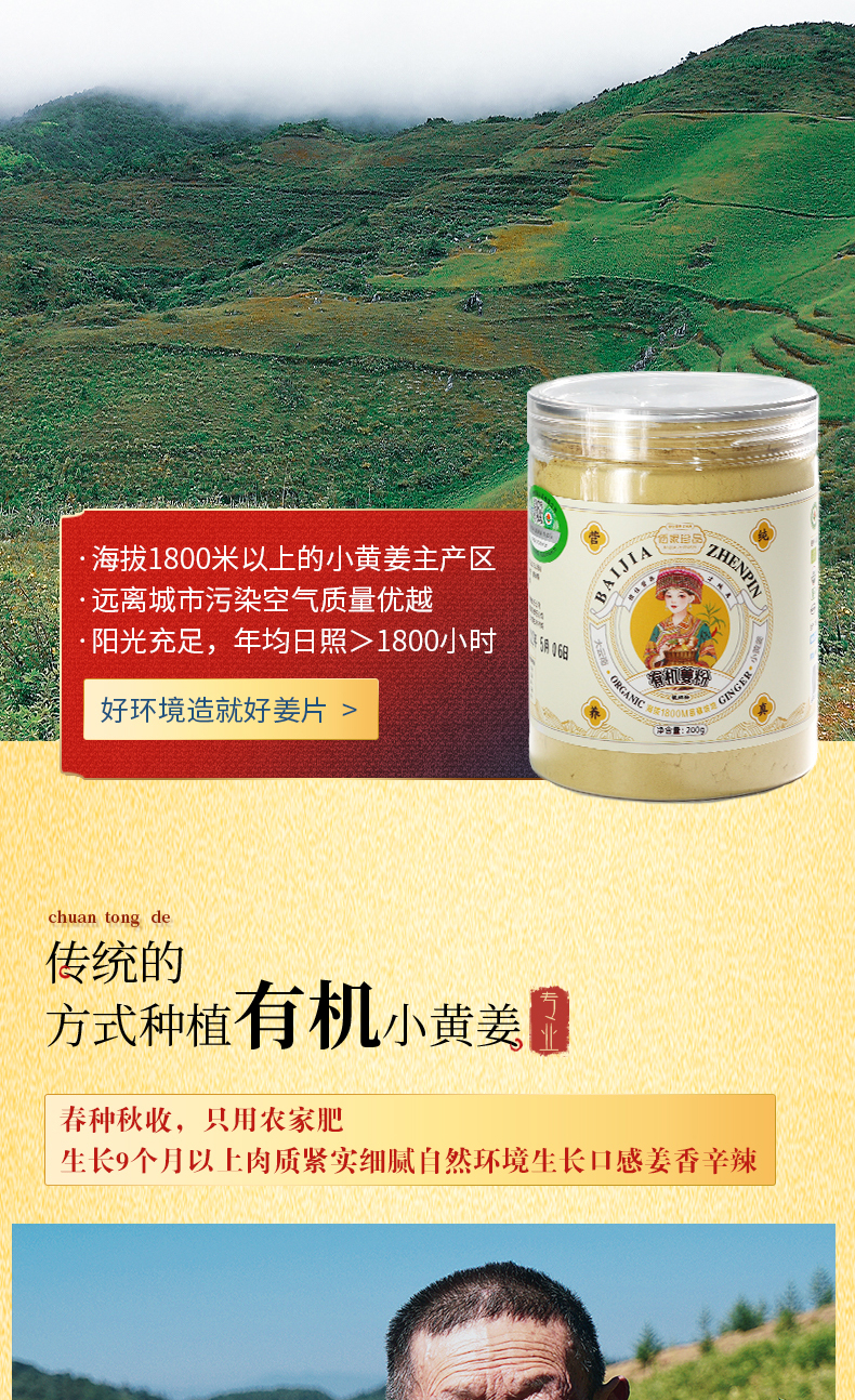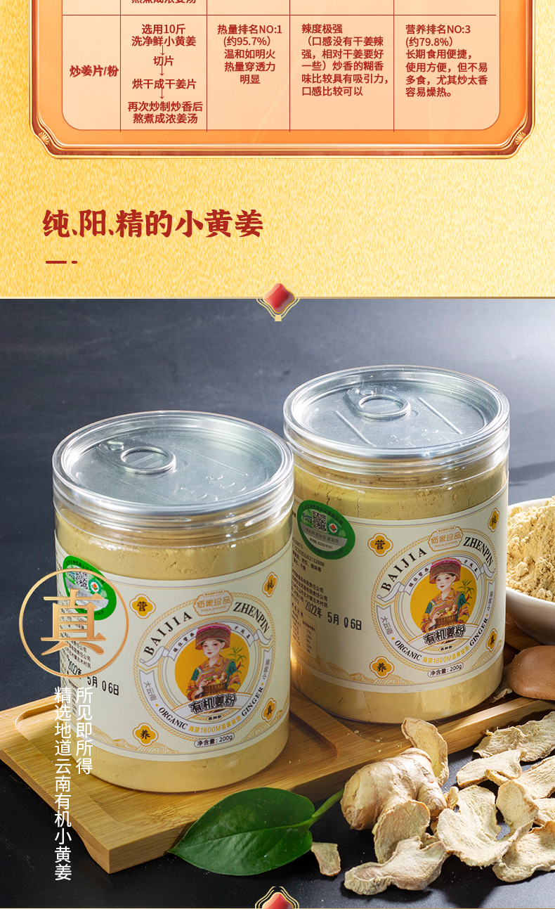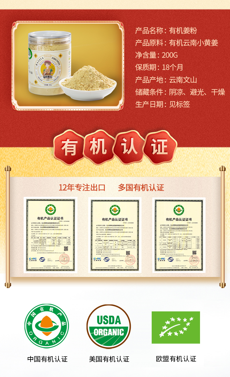 【有机姜粉】200g /罐,中国有机认证,粉质细腻