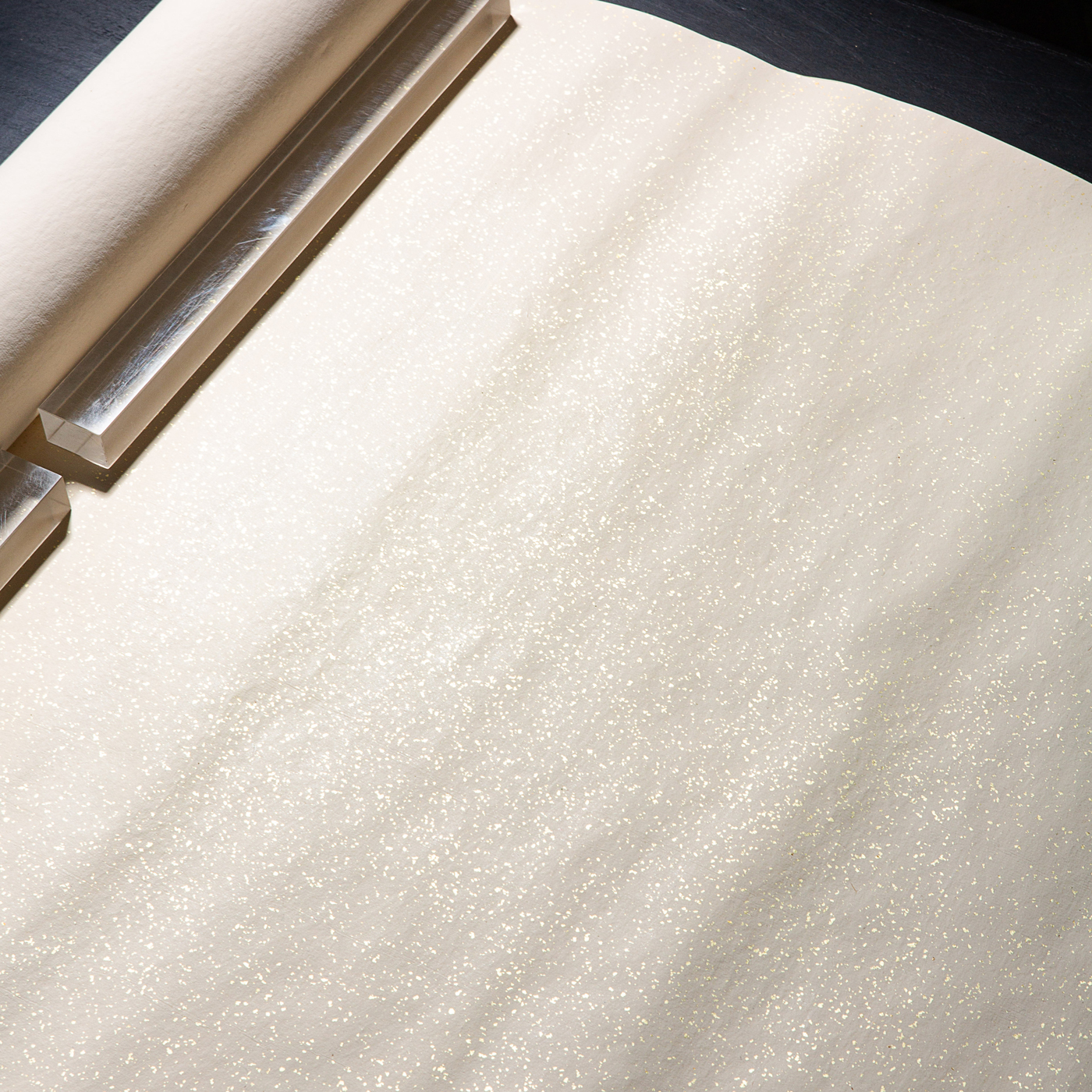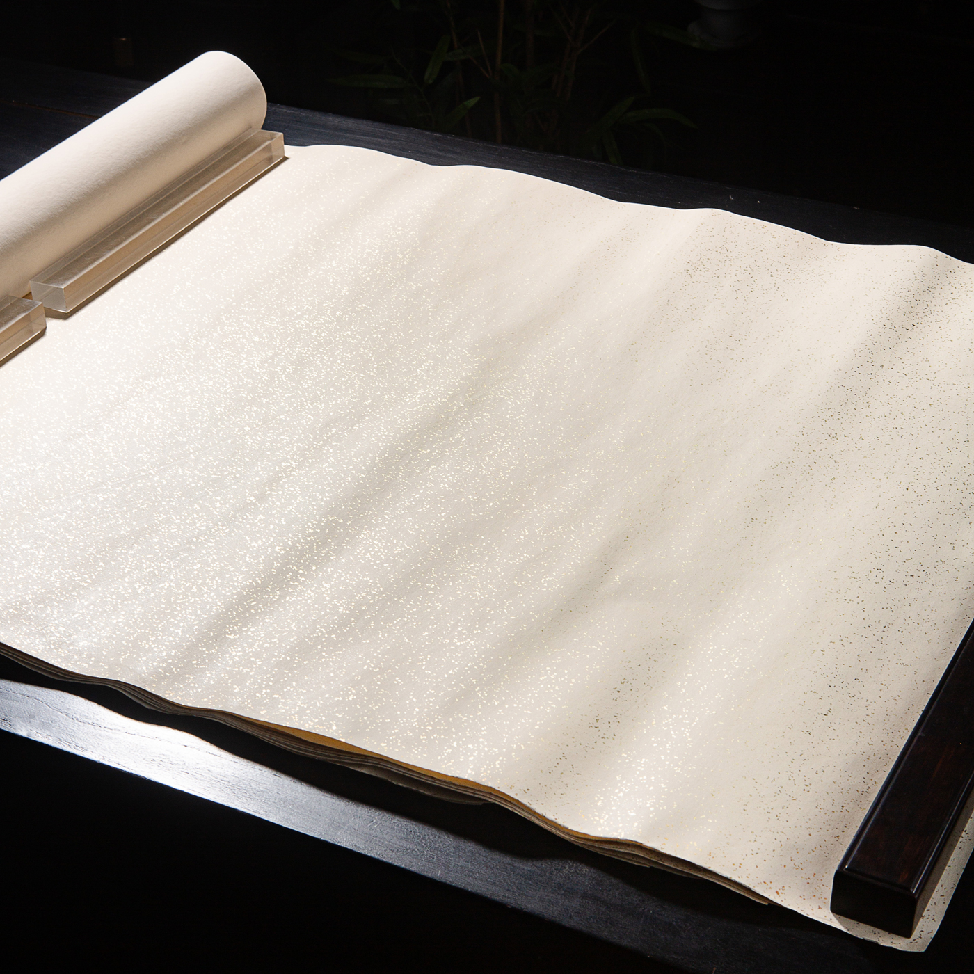 60-70年代A级四尺白色细金笺,纸色雅致,洒真金高贵亮丽,质地紧实细腻,传统蜡笺工艺精制,品相保存完美,存世稀少,极为难得。