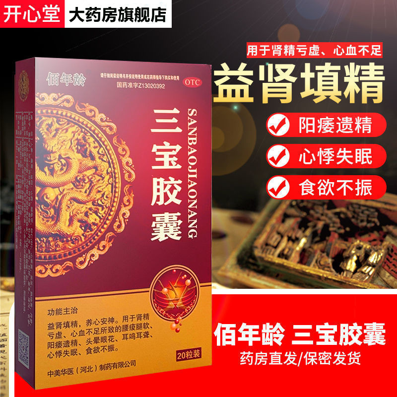 多盒优惠】佰年龄 三宝胶囊20粒/盒补肾阳痿遗精心悸失眠食欲不振