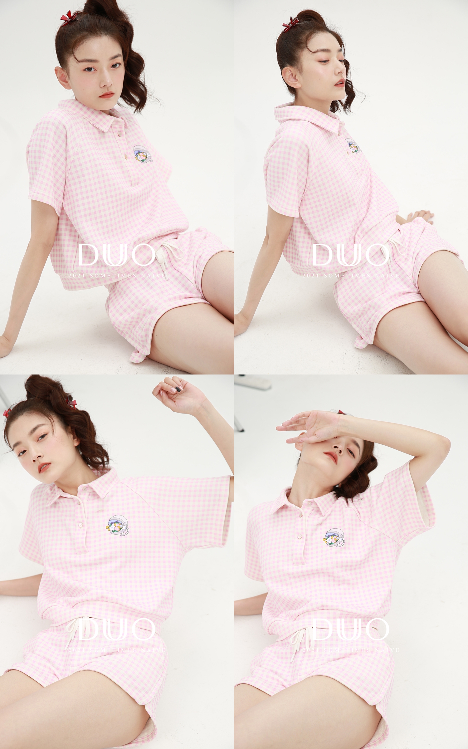 美少女宇航员粉色格子运动套装