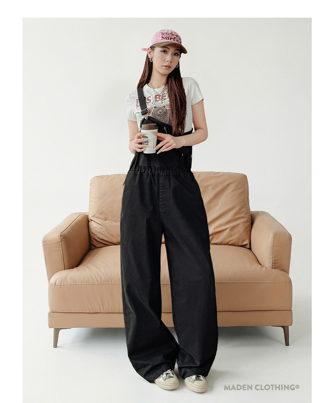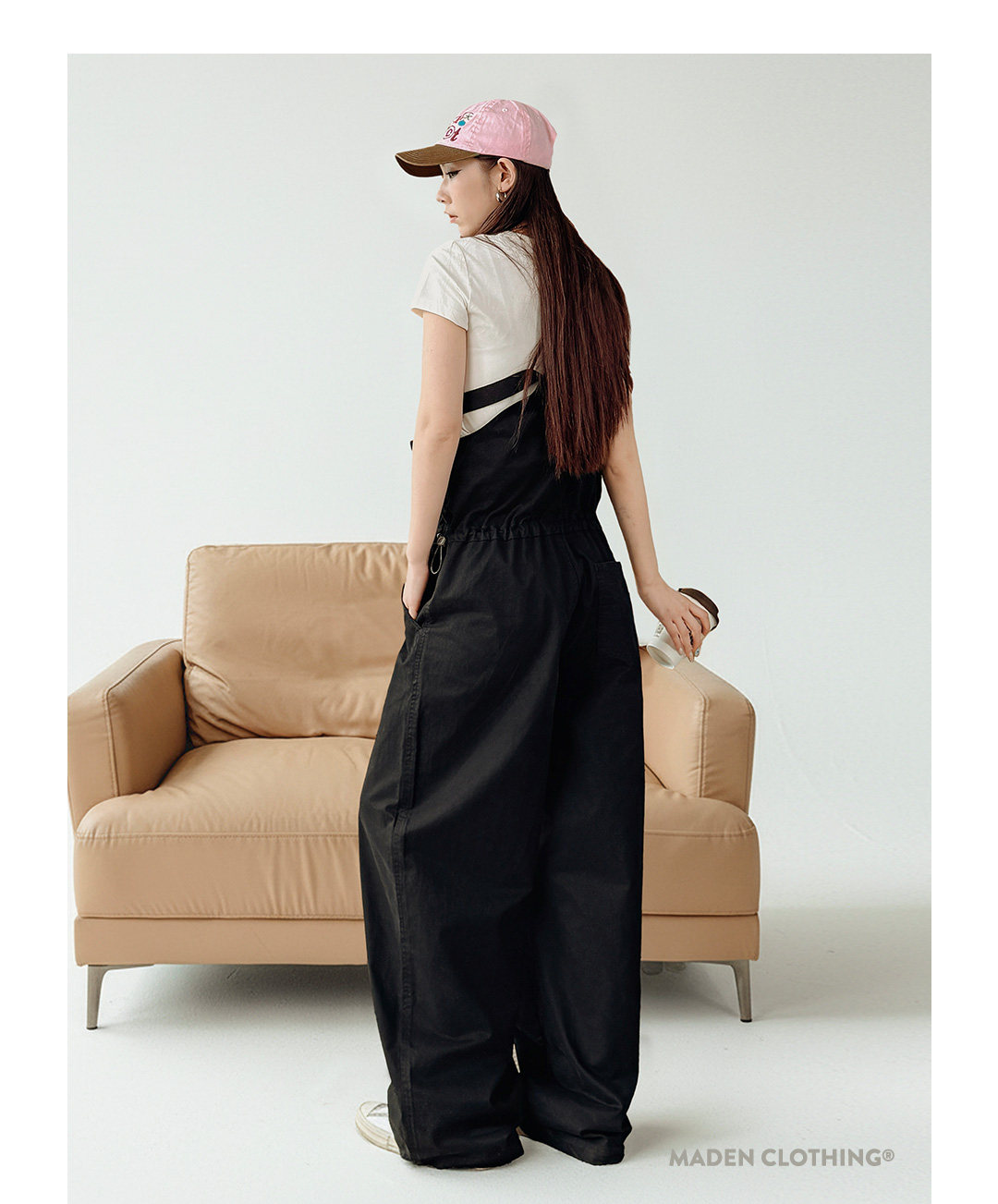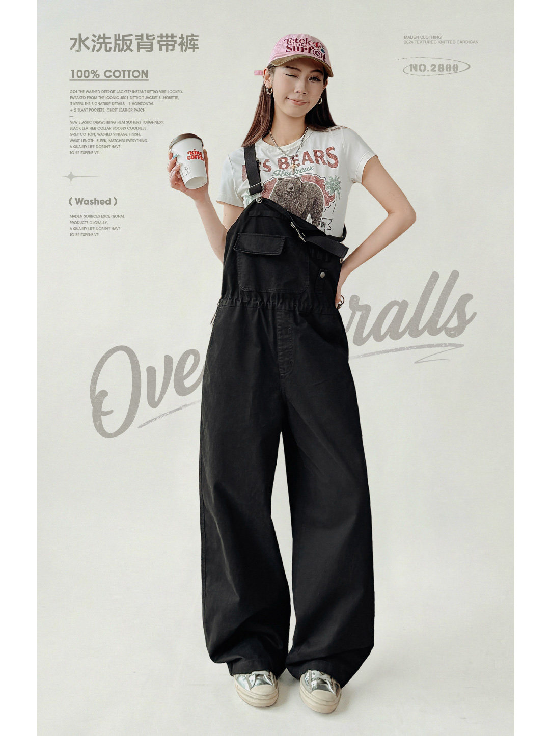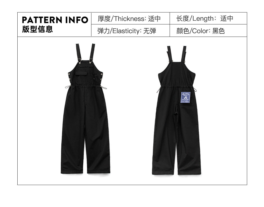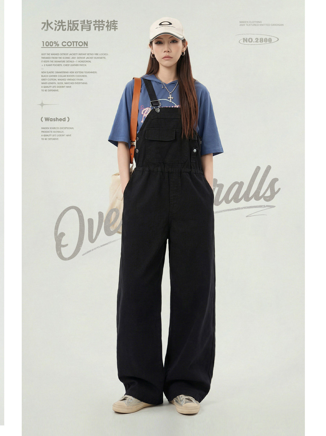 马登美式黑色阔腿直筒工装连体背带裤显瘦收腰纯棉吊带裤子女士春