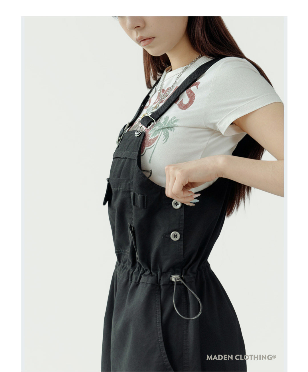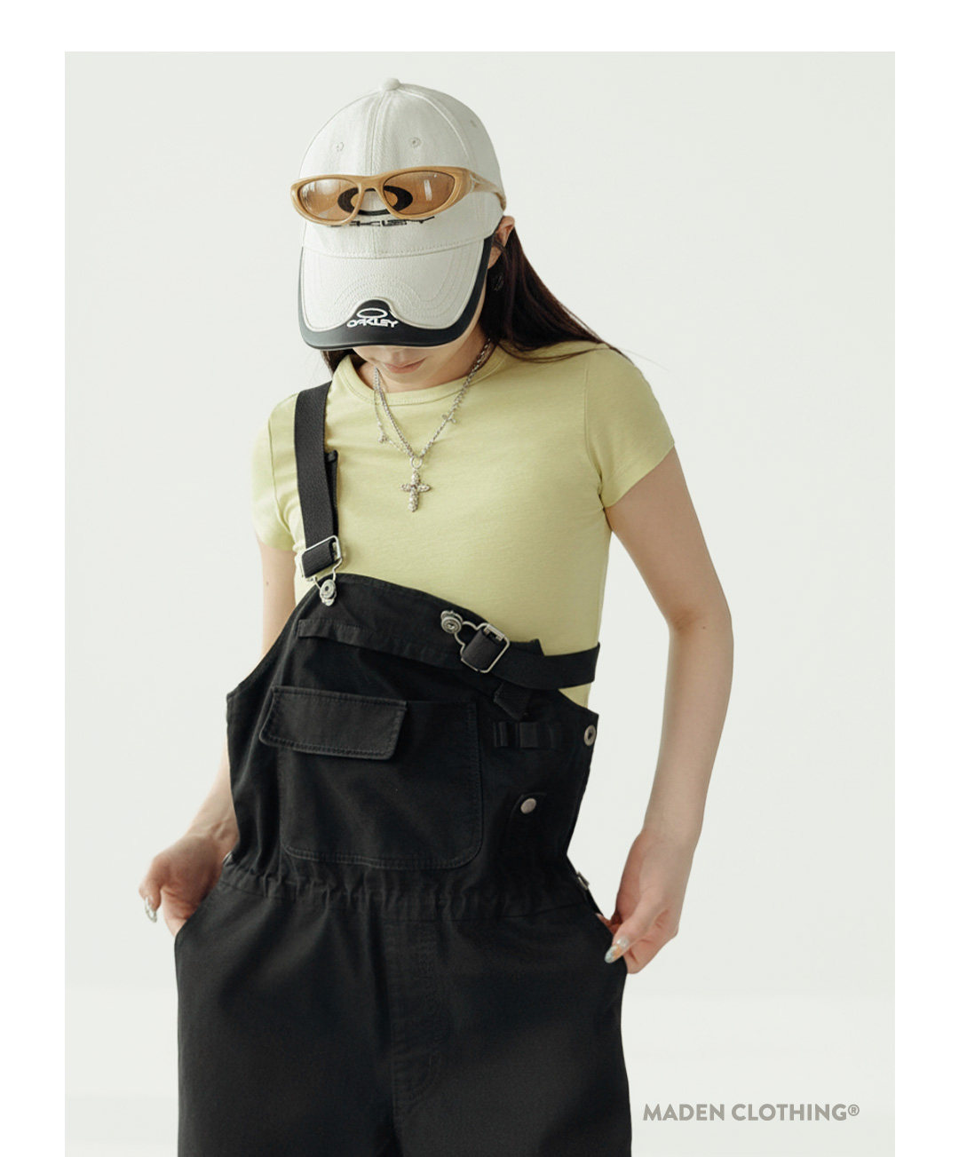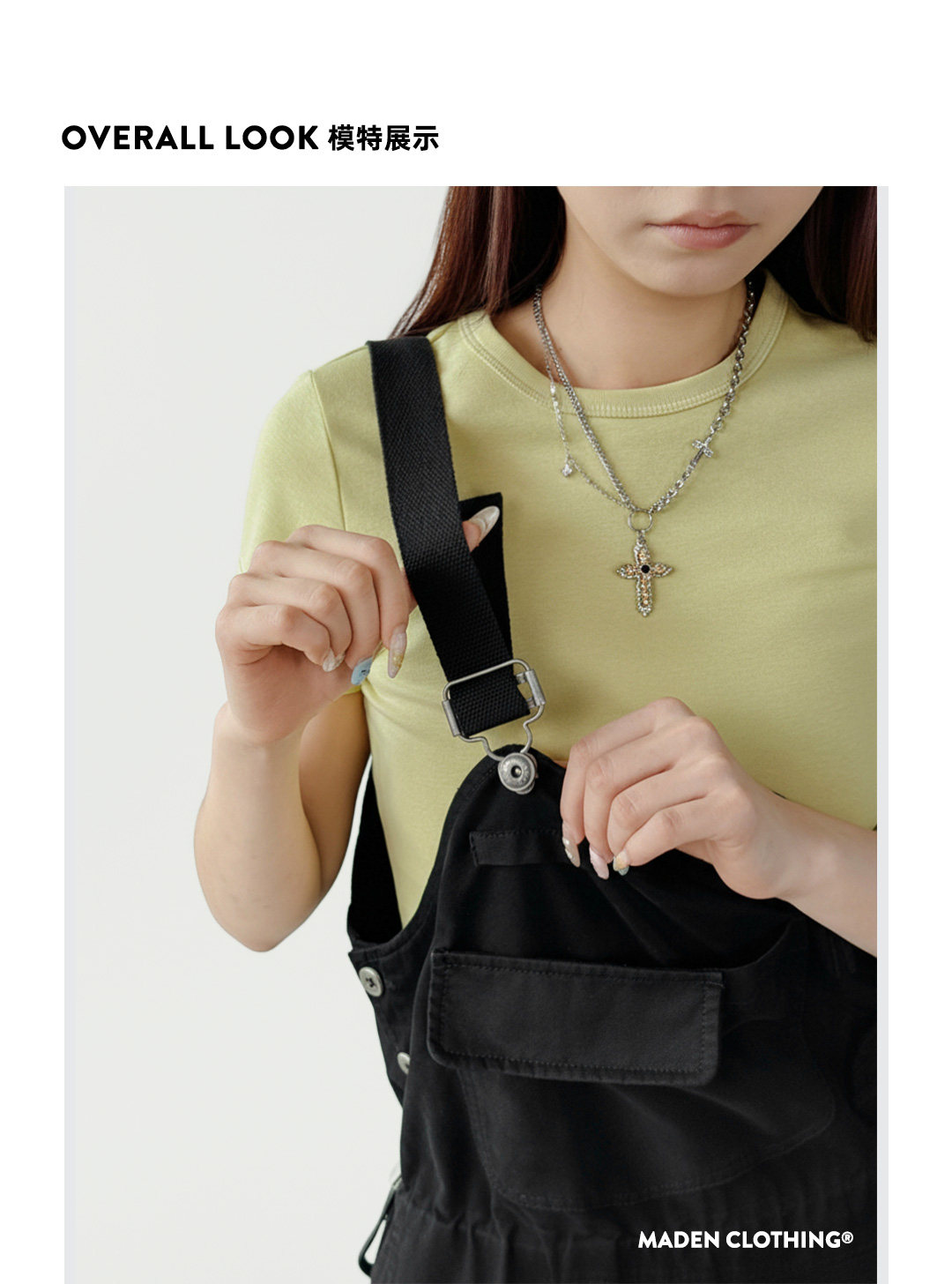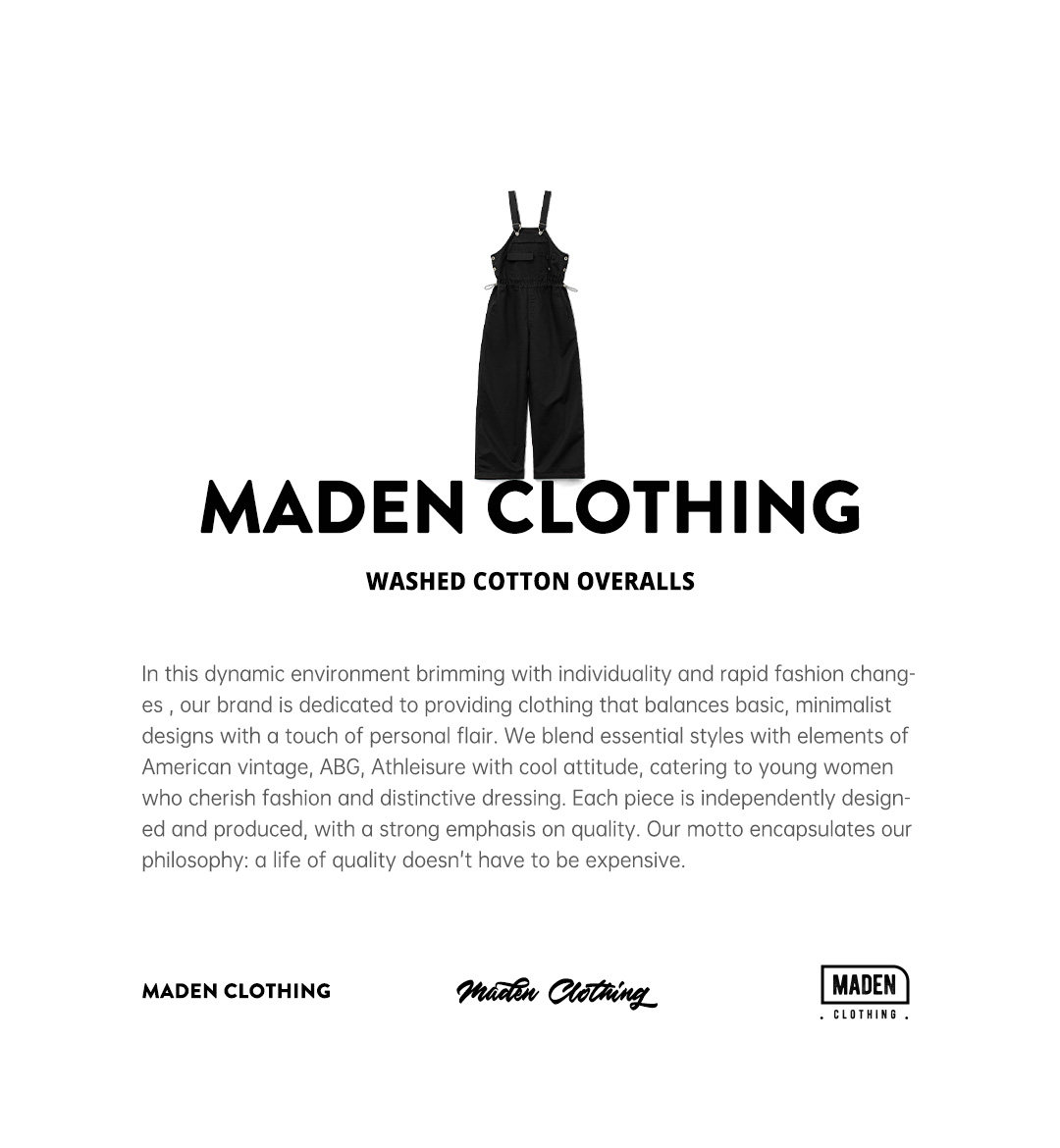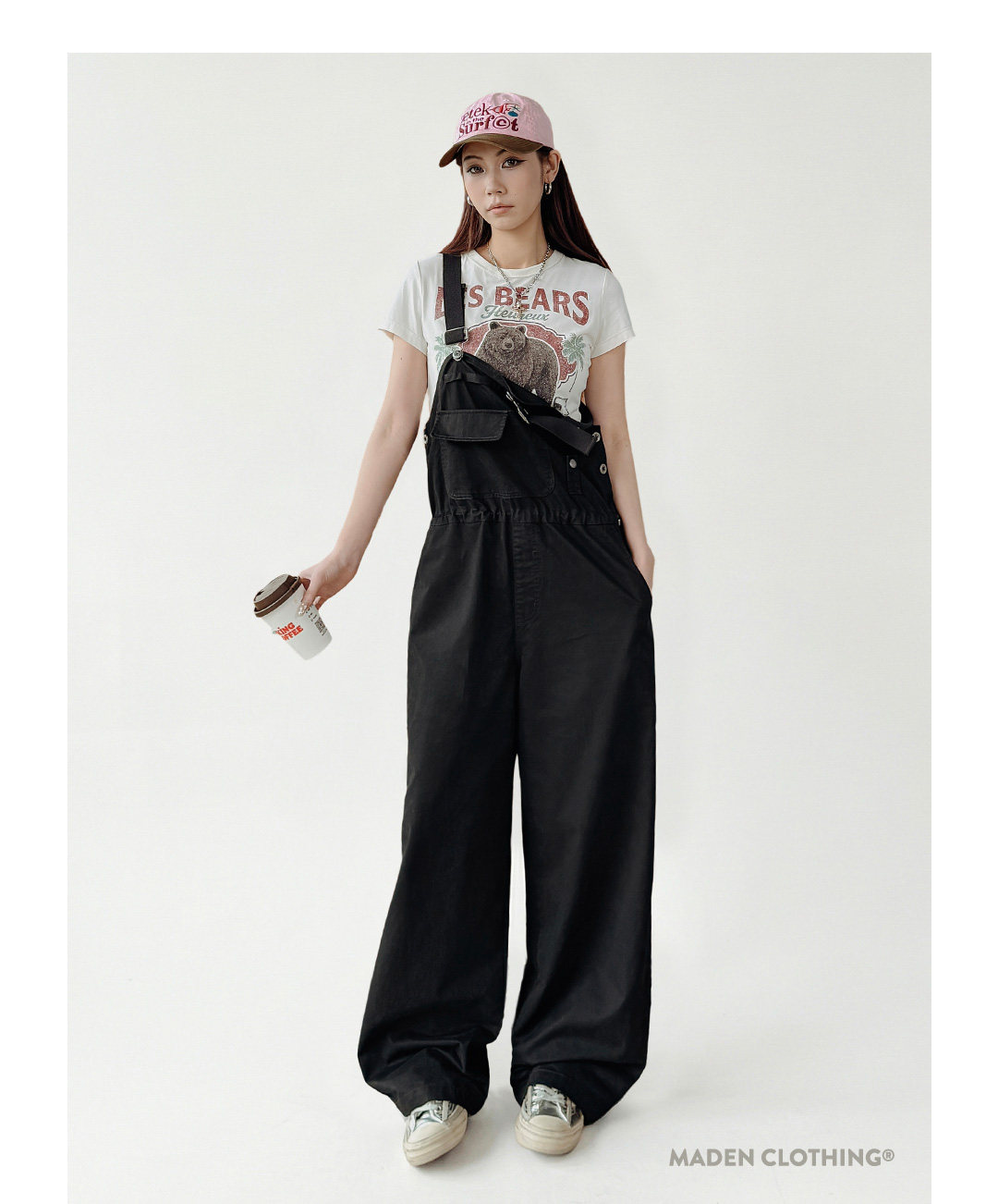 马登美式黑色阔腿直筒工装连体背带裤显瘦收腰纯棉吊带裤子女士春