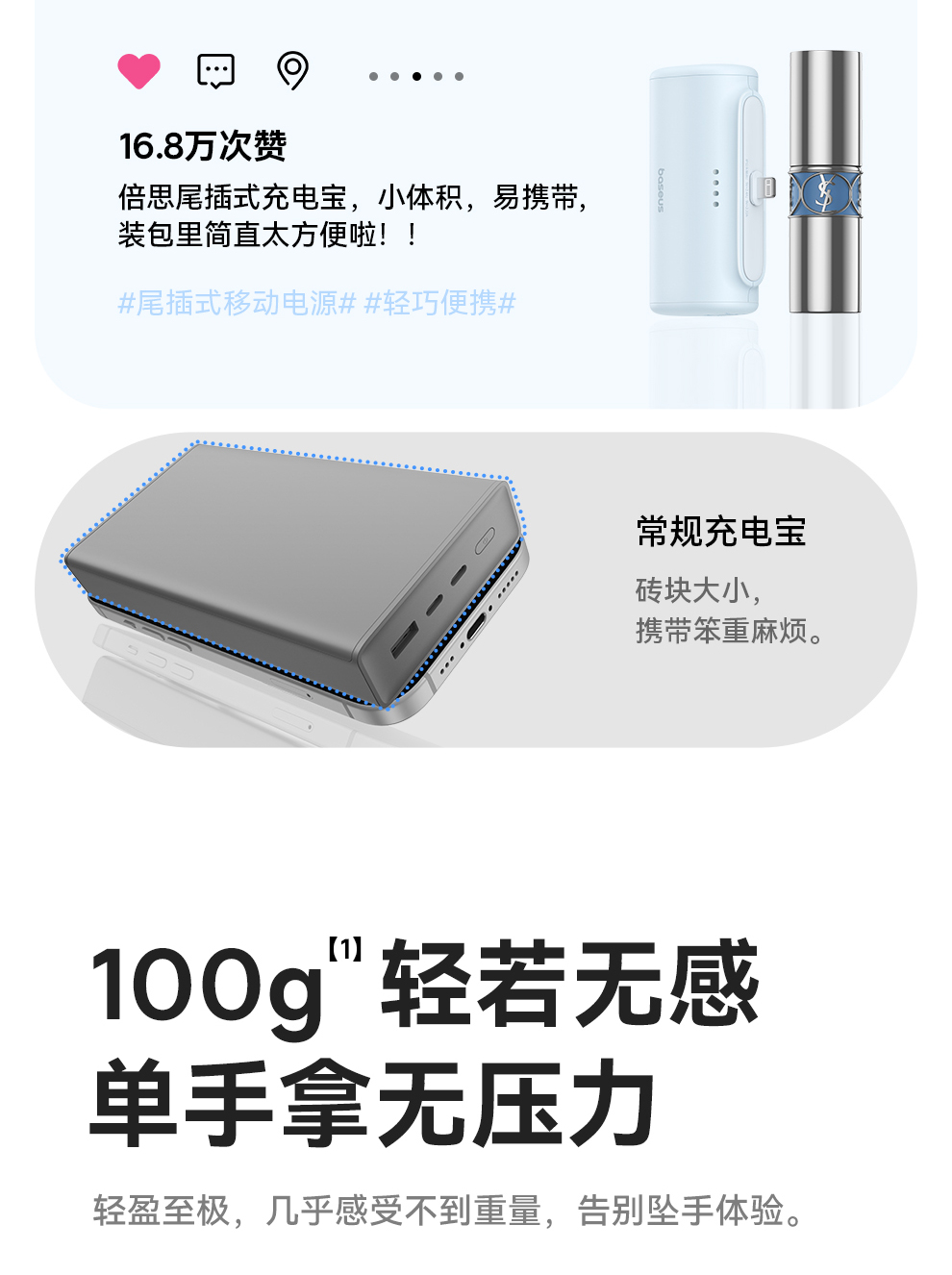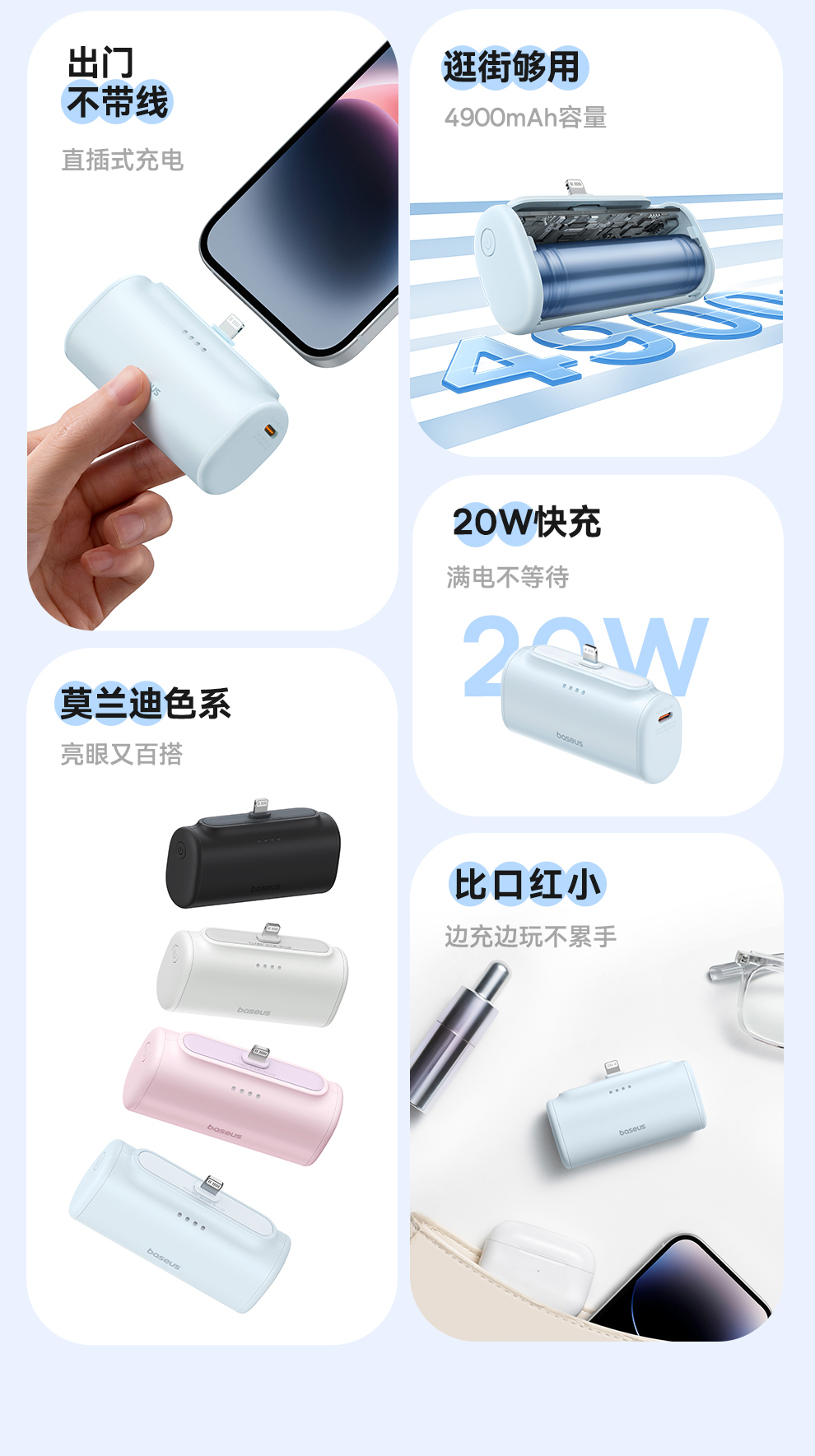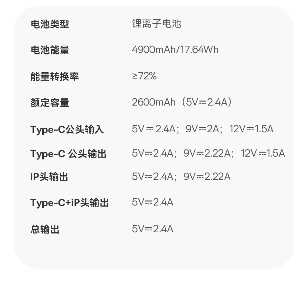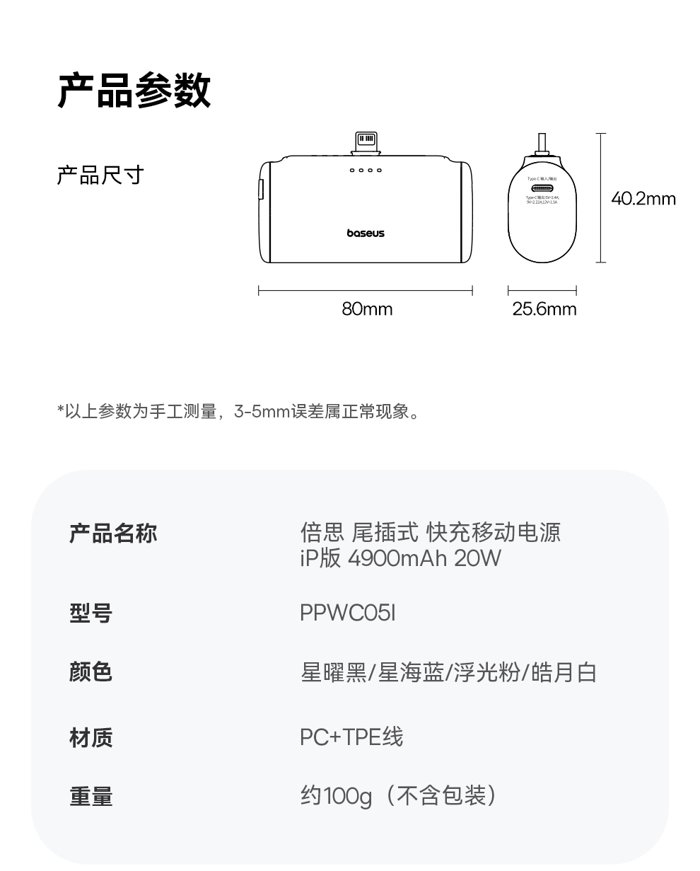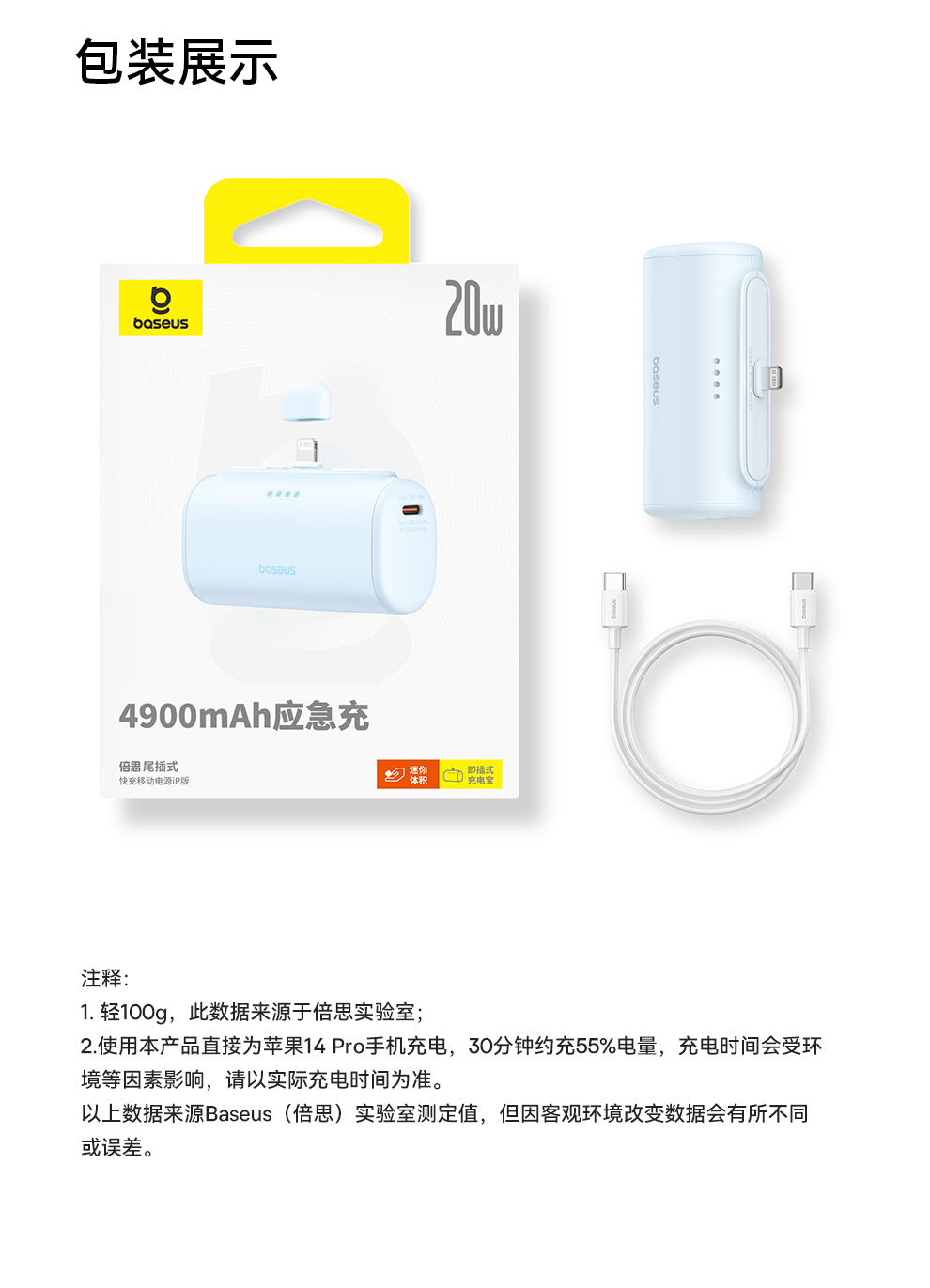 【国家3C认证】尾插式快充移动电源iP版/Type-C版 4900mAh 20W