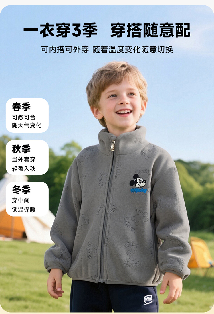 迪士尼童装中性常规外套时尚简约拉链外套秋季新款ZD3ES083