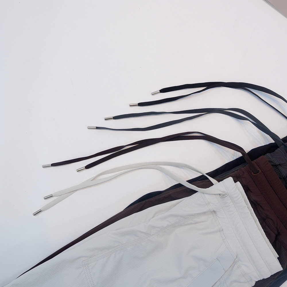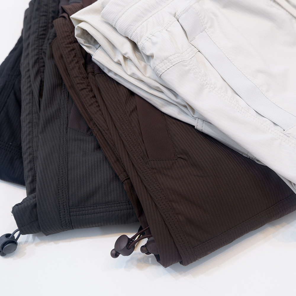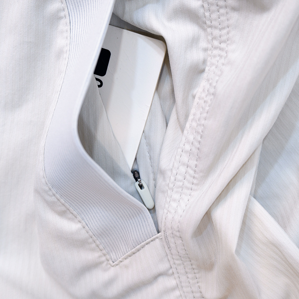面料和辅料同色系都要定制定染,轻薄透气的swift速干面料,触感冰冰凉凉,整条裤子都是按照人体工学做的立体裁剪,工艺复杂工价高。