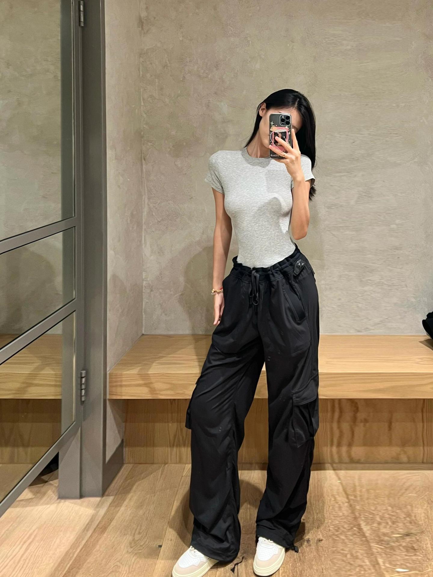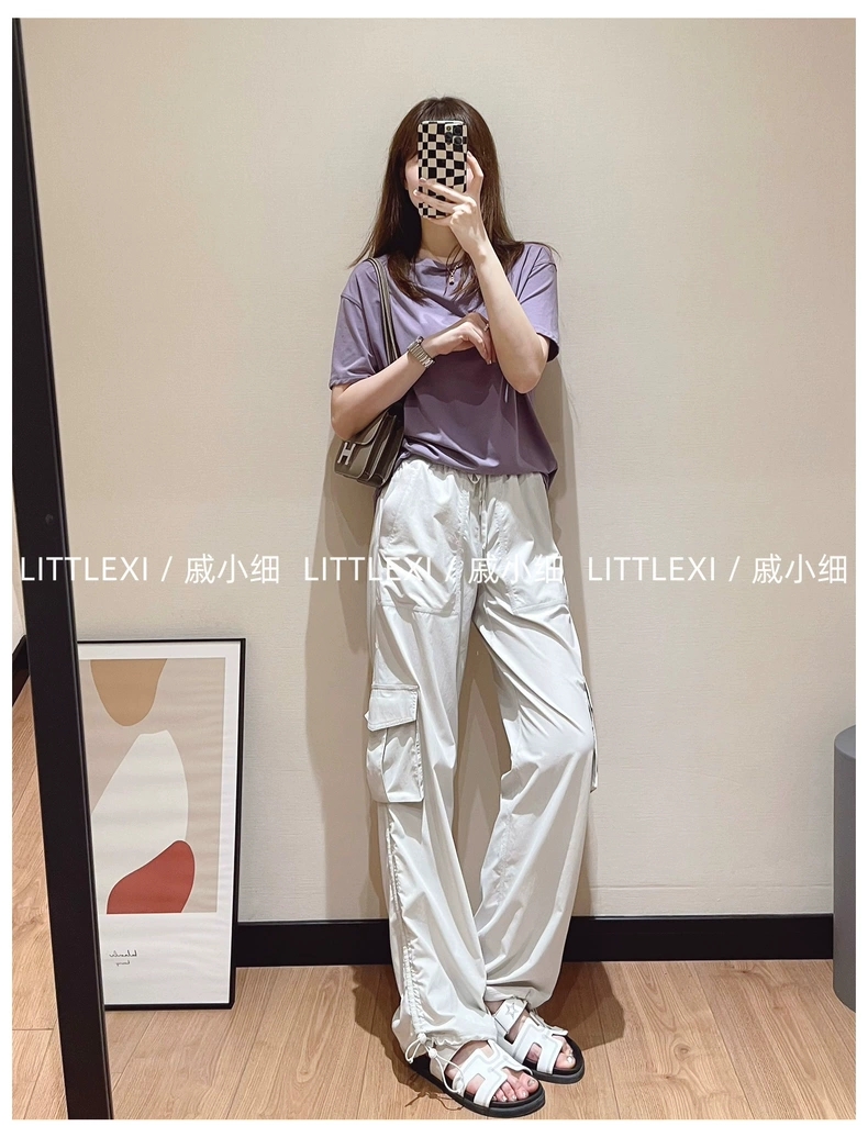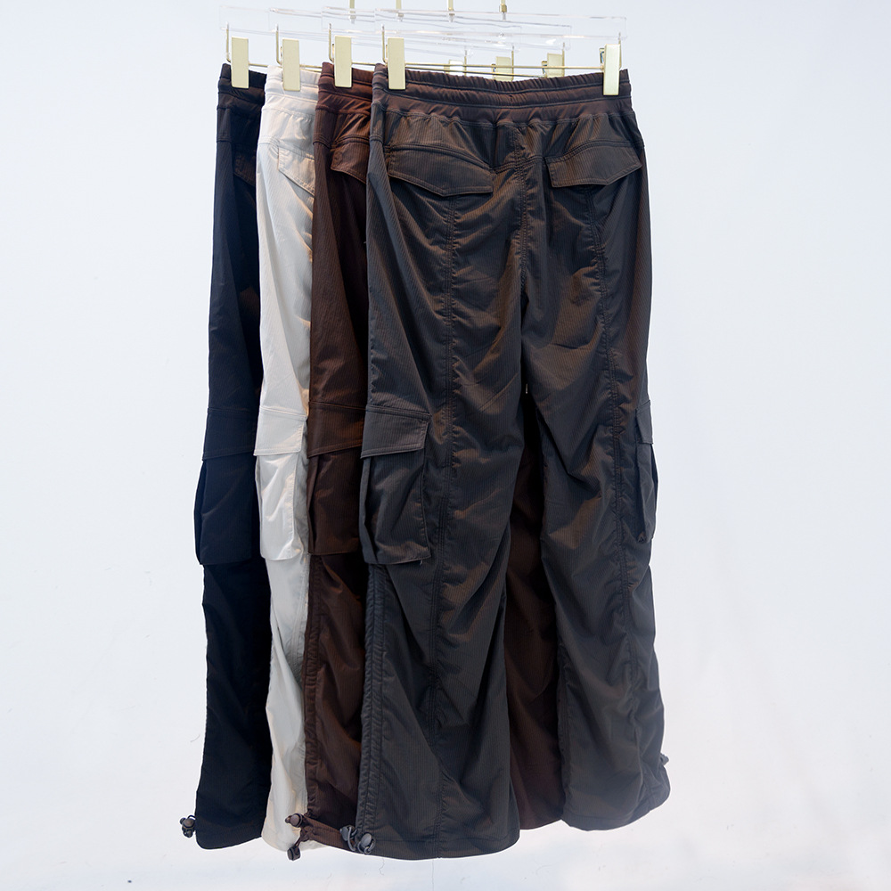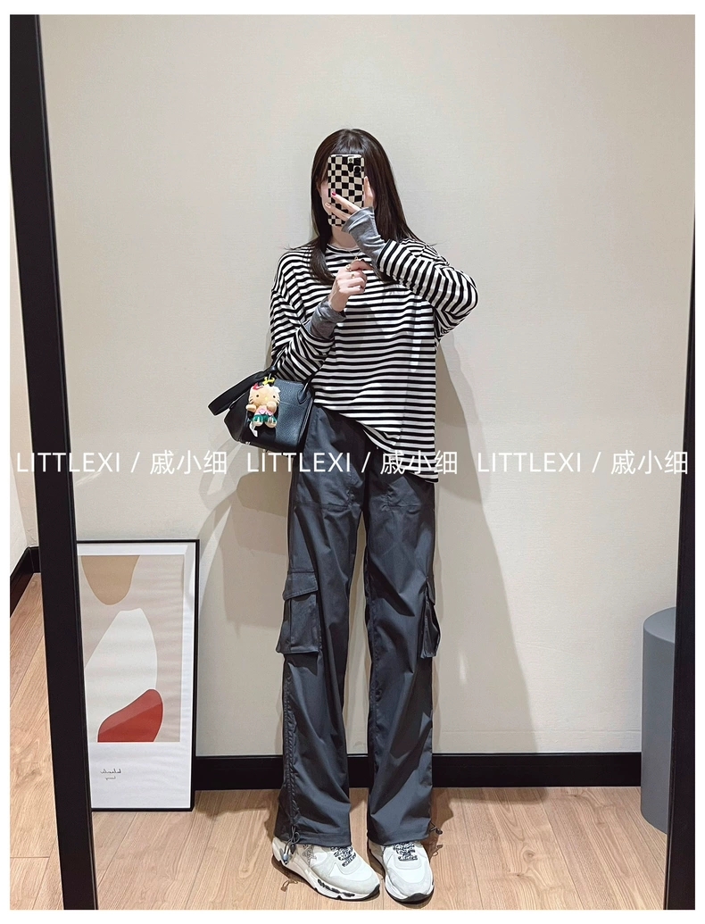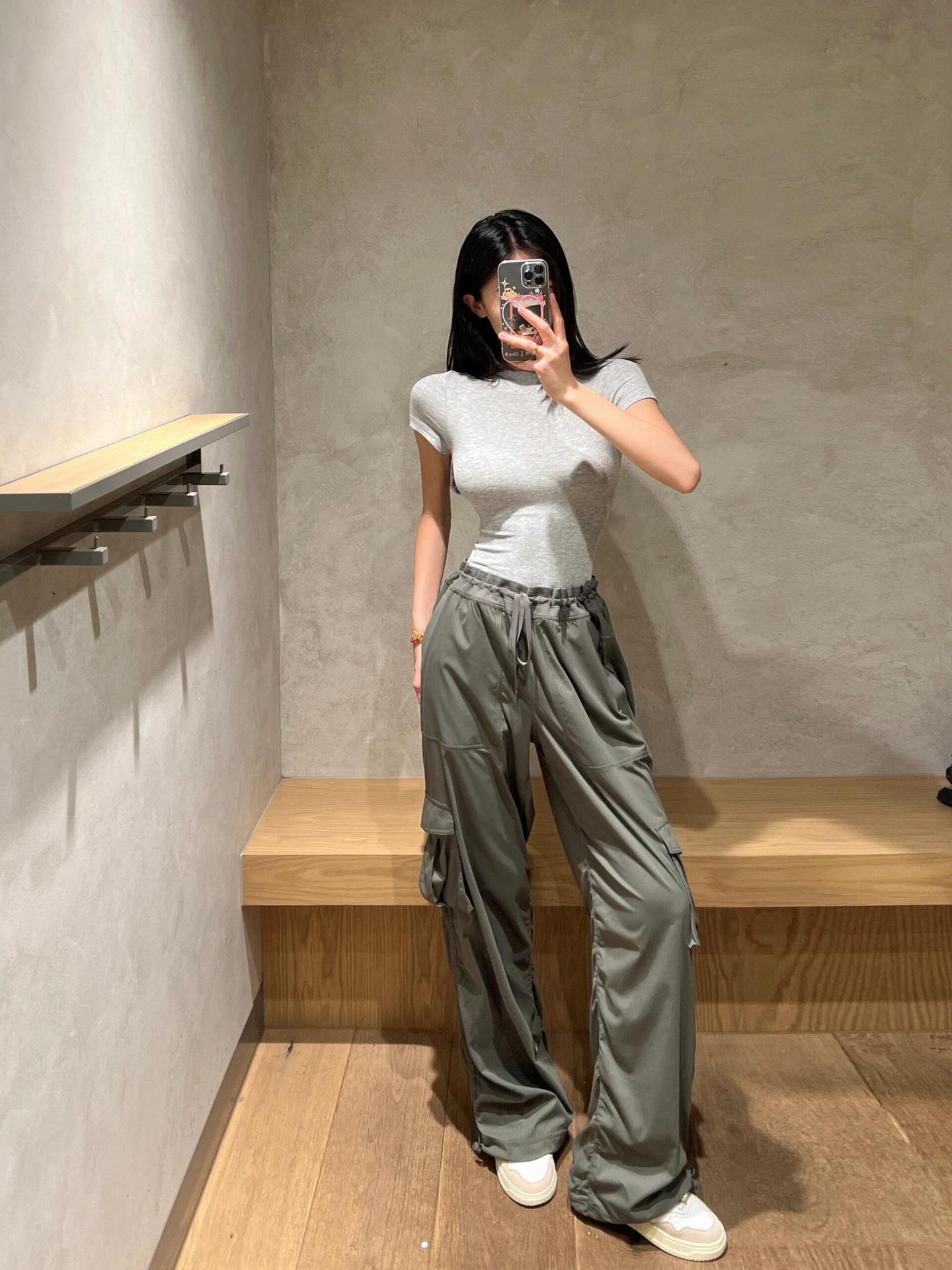 穿上后自带提臀效果,腰围和口袋做了拼接设计,特潇洒,小腿处的抽绳设计,有两种调节方式,上下抽紧可以调节裤子长度,左右收紧裤腿就变成束脚裤型。