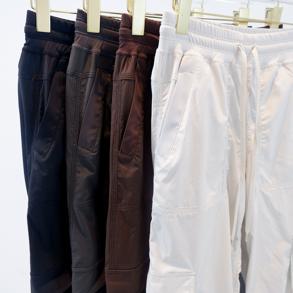 代工厂lulu工装裤~进口客供面料,定制定染swift速干面料立裁直筒,巨显瘦还显腿长。