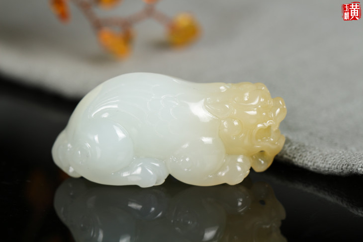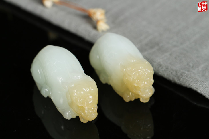 和田羊脂白玉【鸿运当头】 一对貔貅吊坠 配精美编织挂绳