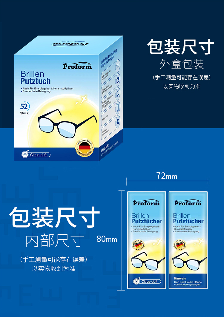 德国普乐姆一次性无痕擦镜纸52片/盒
