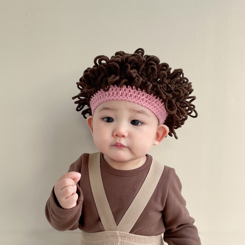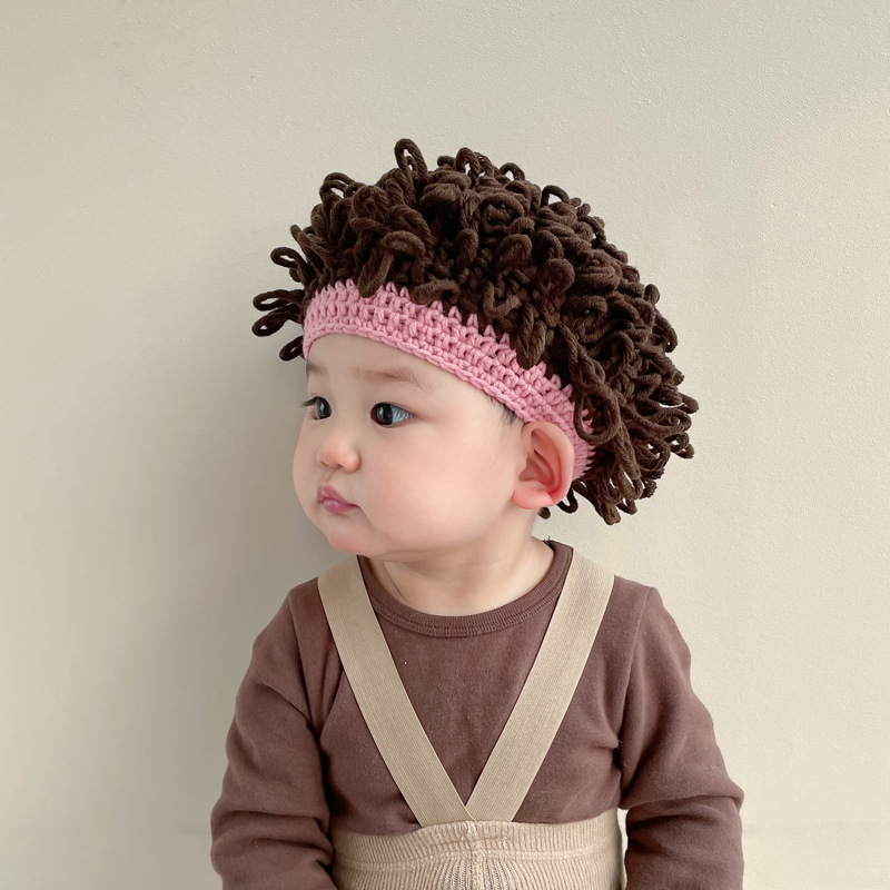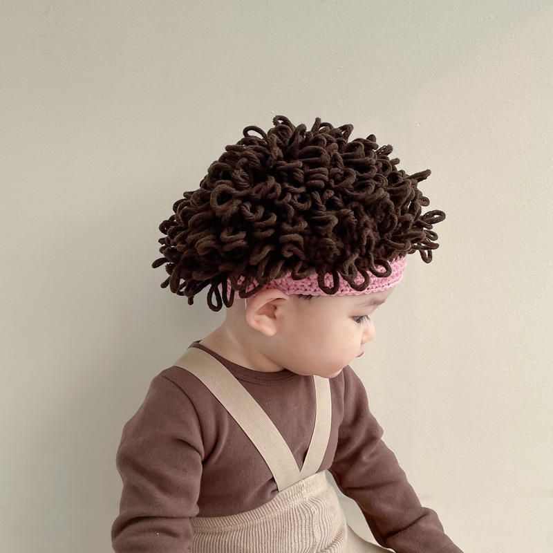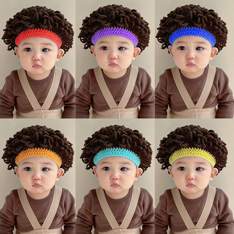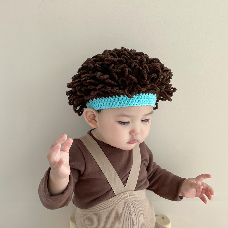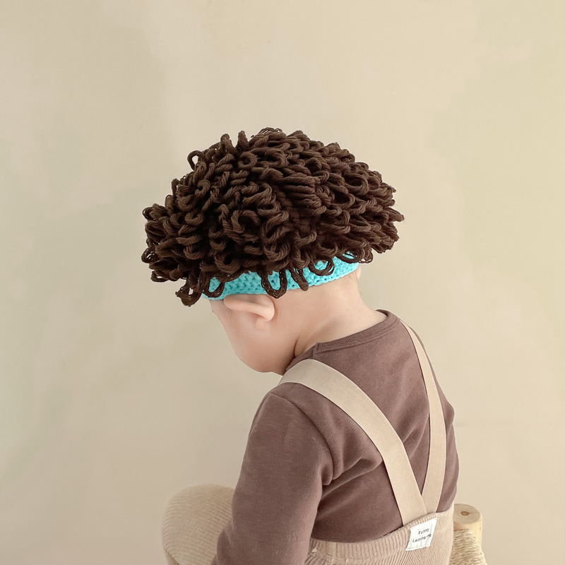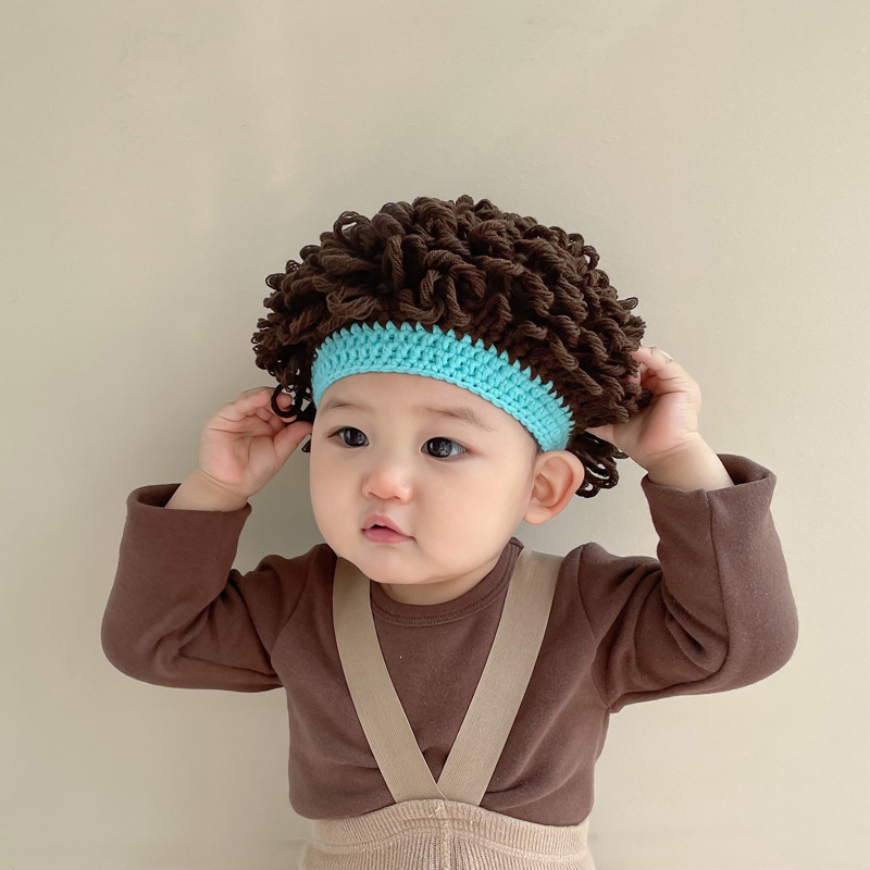 婴儿假发帽子秋冬爆炸头男童宝宝套头帽可爱凹造型搞怪卷发帽