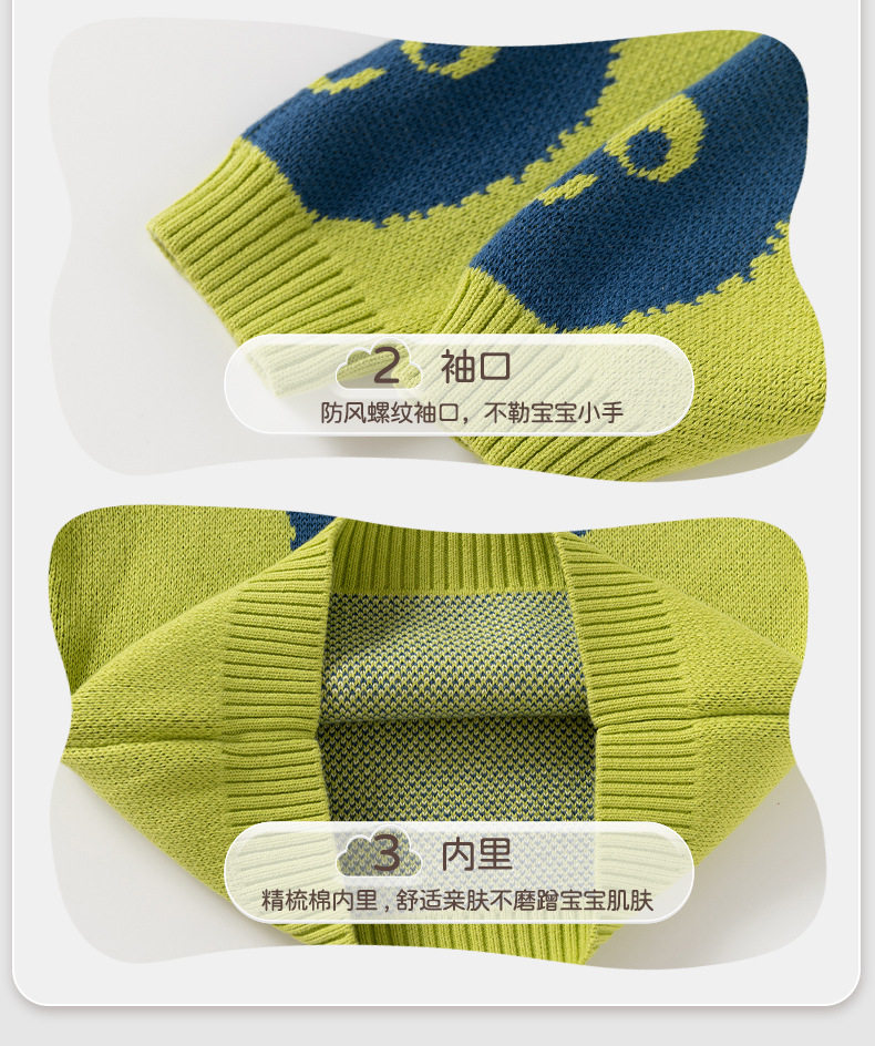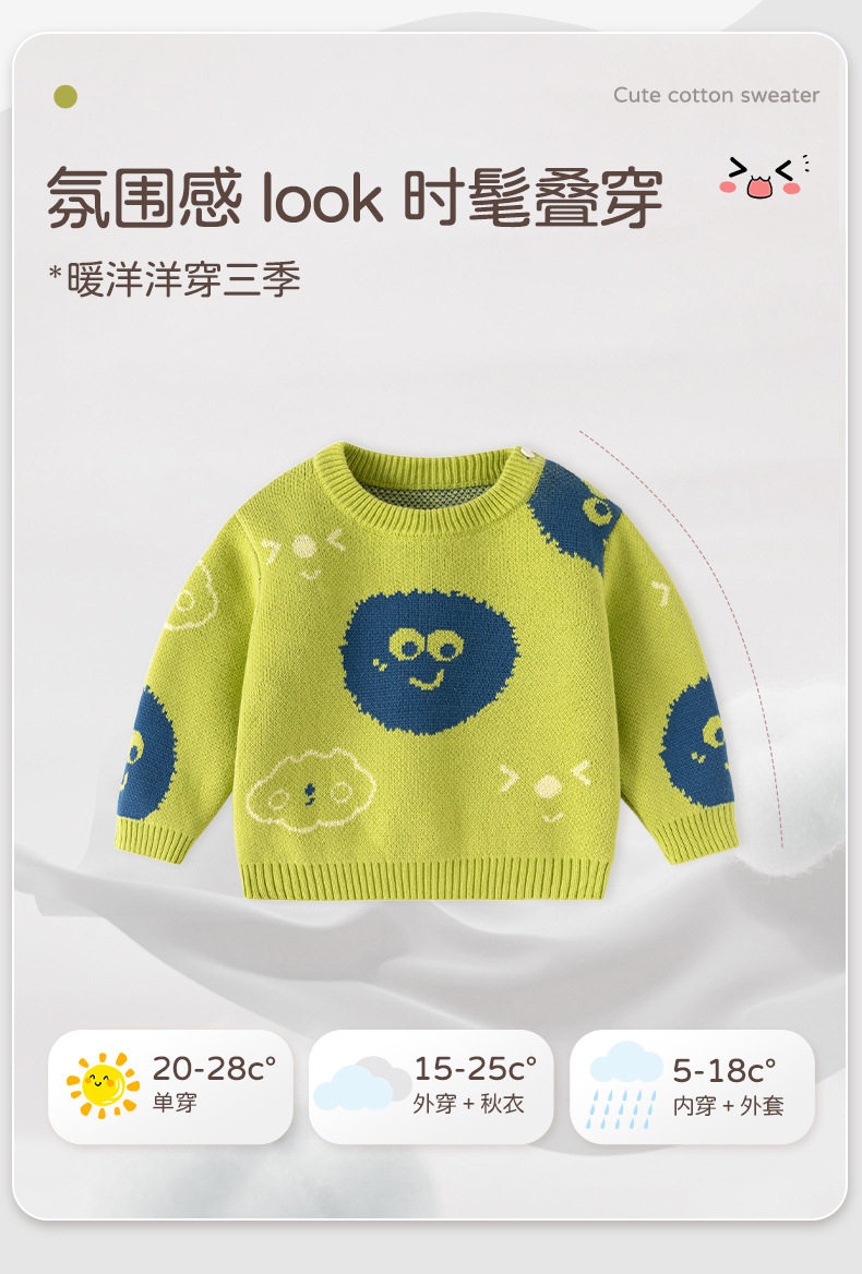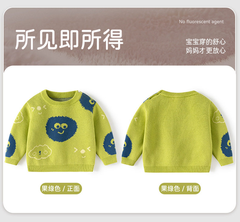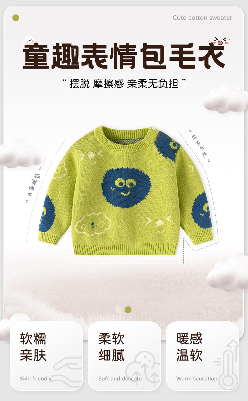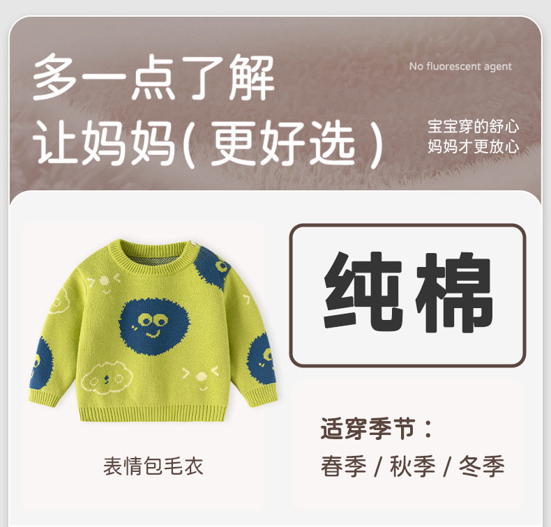 果绿表情包韩版男童毛衣针织纯棉婴儿毛衣A类秋冬款加厚儿童毛衣