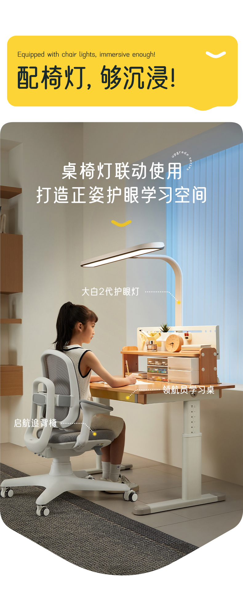 领航员桌+启航椅赠品:全覆盖护眼桌垫*1、启航椅专用椅套*1
