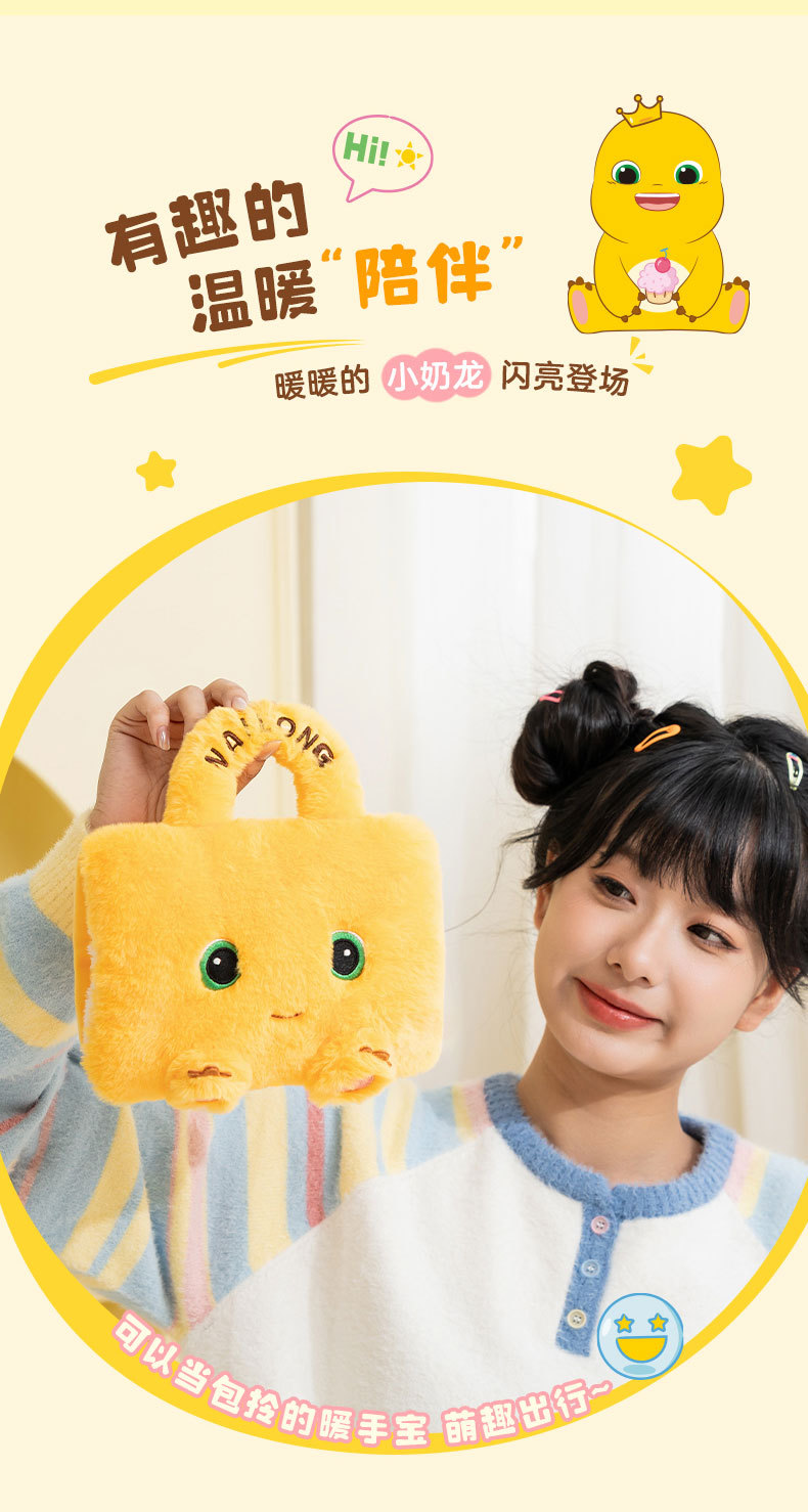 【奶龙暖水袋,联名款正版授权】天虹新款迷你奶龙电热水袋国标电暖宝,双面厚实毛绒驱散寒冷,卡通暖手袋可拆洗暖手宝可拆卸智能防爆QQ