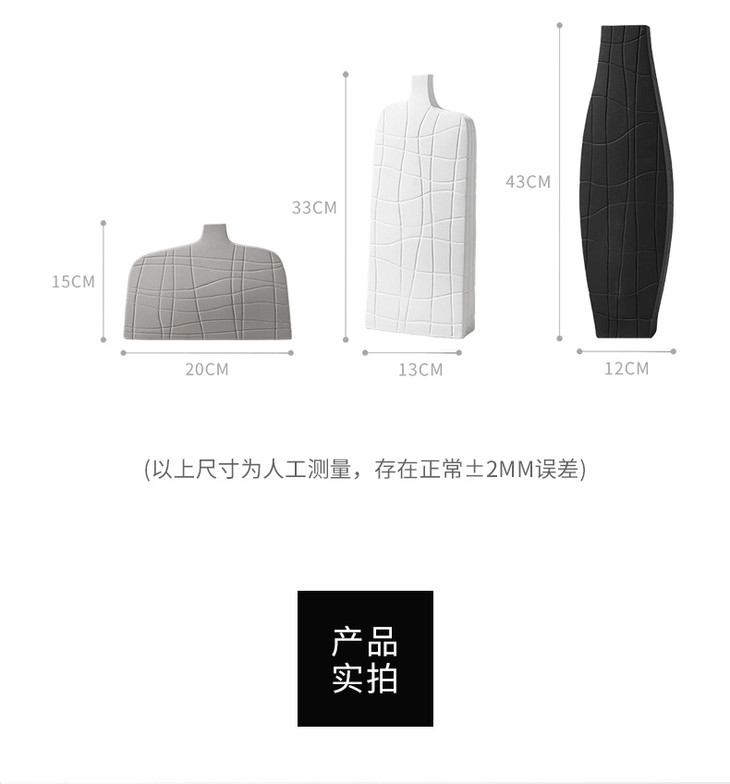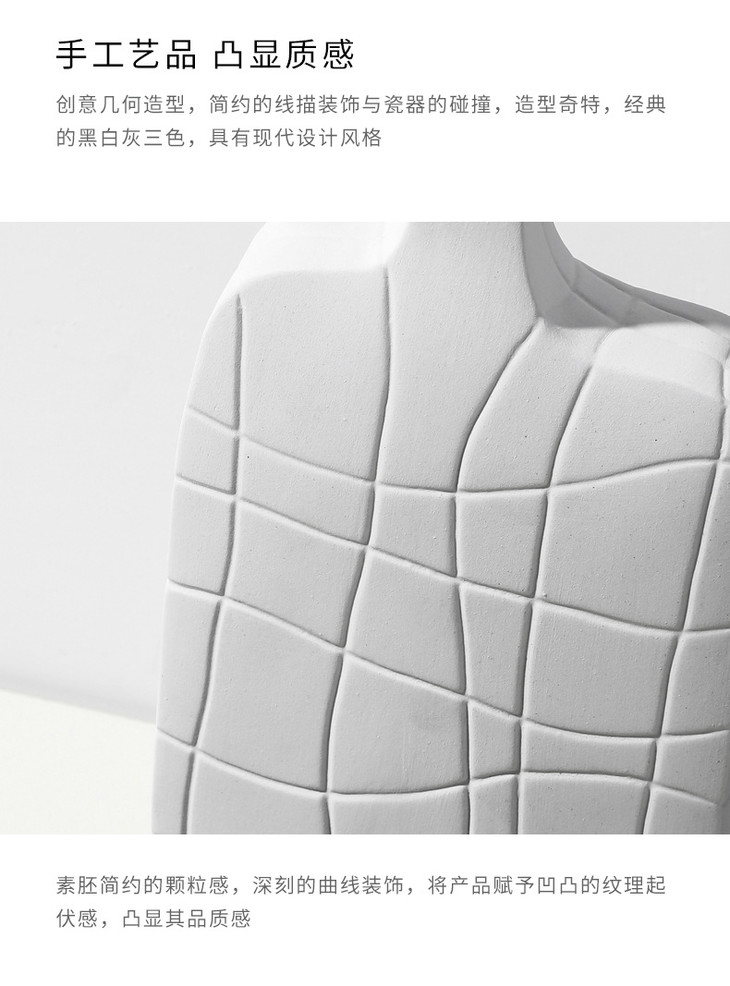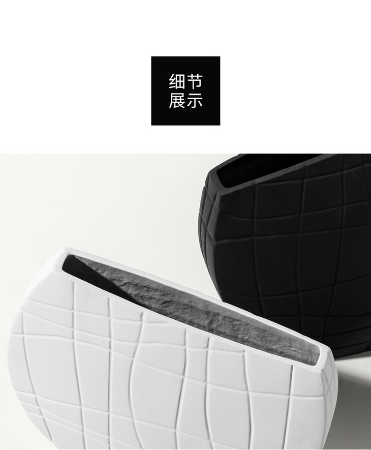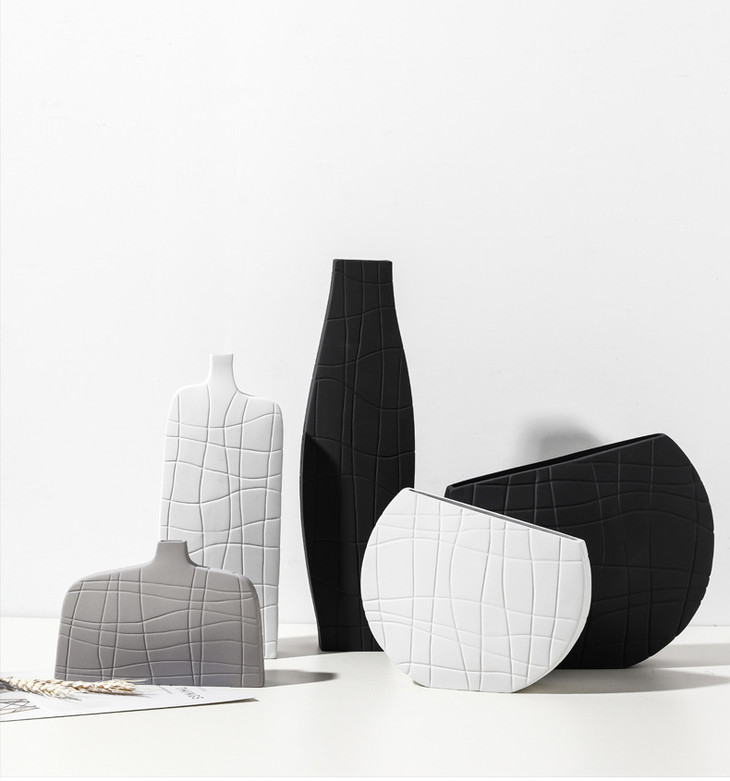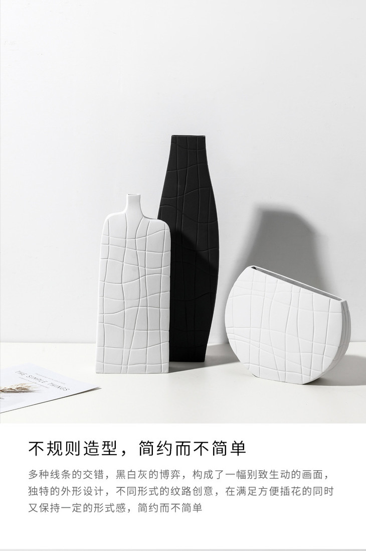 【家居摆件】北欧简约艺术黑白条纹陶瓷花瓶创意设计几何样板间桌面家居装饰品
