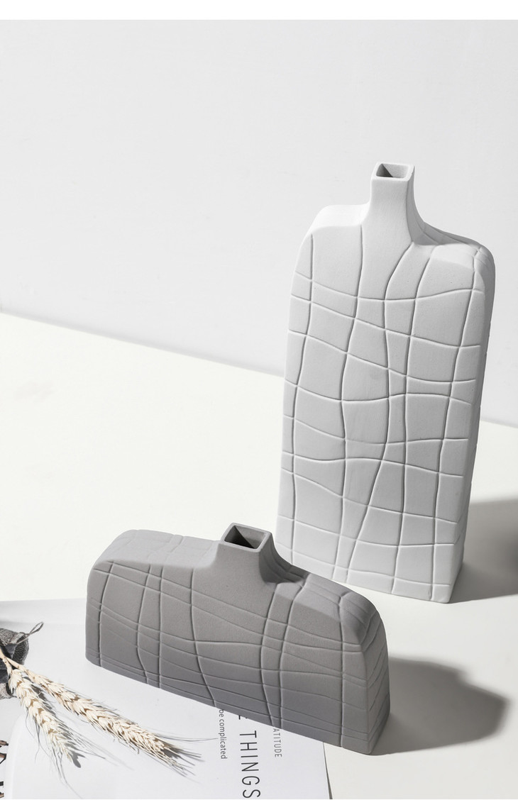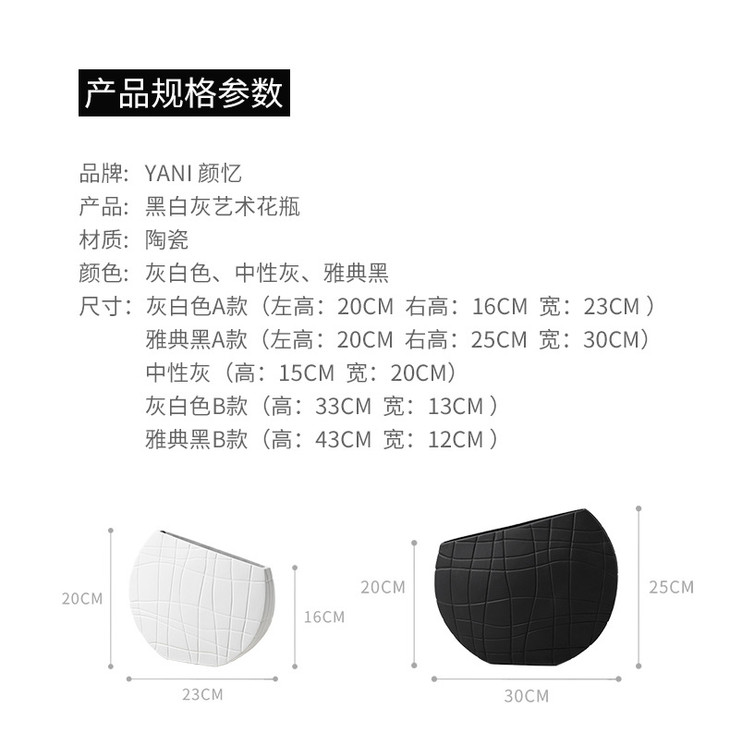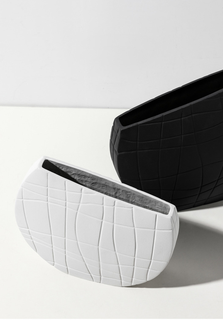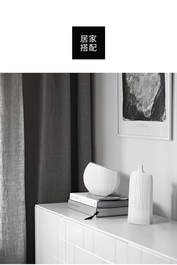 【家居摆件】北欧简约艺术黑白条纹陶瓷花瓶创意设计几何样板间桌面家居装饰品