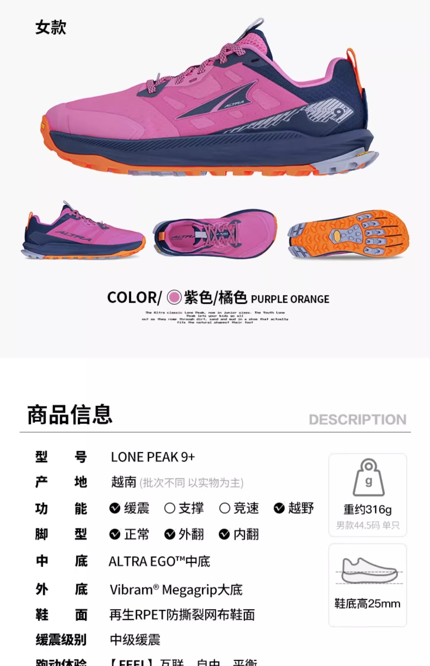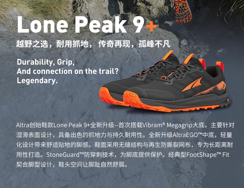 Altra奥创 LP9 男女款越野跑鞋LONE PEAK 9+缓震耐磨越野鞋