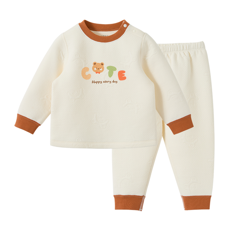 怡比萌趣文字长袖圆领套装HY25WIN098米黄(80#-120#)