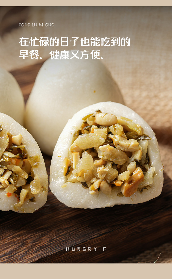 而米果的馅料,更是讲究"鲜、香、脆、嫩"的完美融合。咸肉、春笋、油豆腐、辣椒等时令食材被细心切碎,再以适量的食用油、食盐、味精调味,经过大火快炒,激发出食材本身的鲜美与香气。待馅料自然冷却后,便被包裹进那柔软的米粉皮中,封口严实,形状饱满。配料表虽然长长一大串,其实全都是我们常见食材,干干净净,可以放心吃!