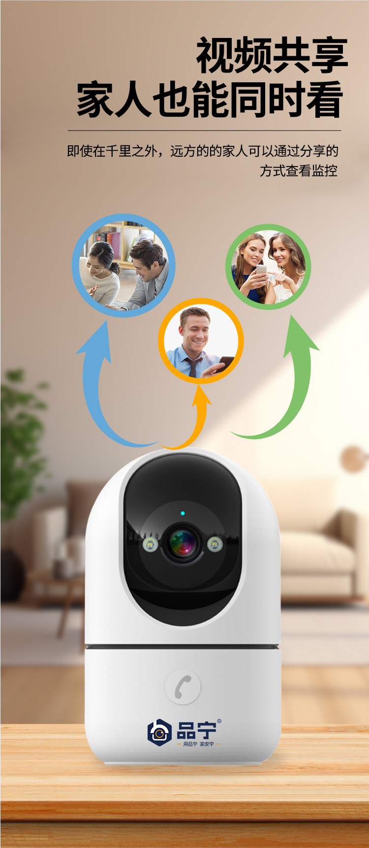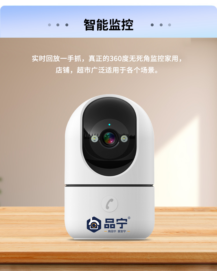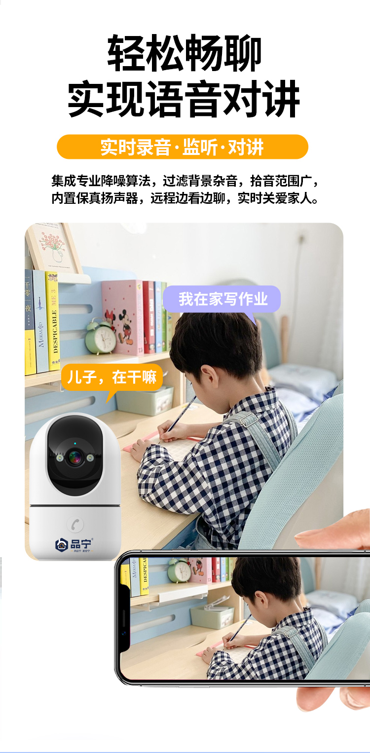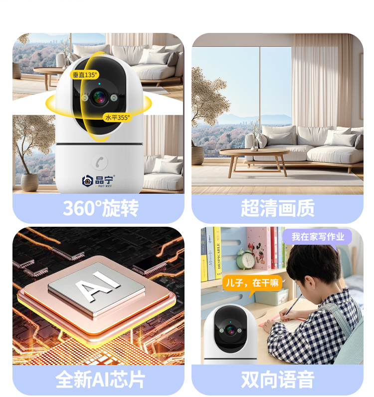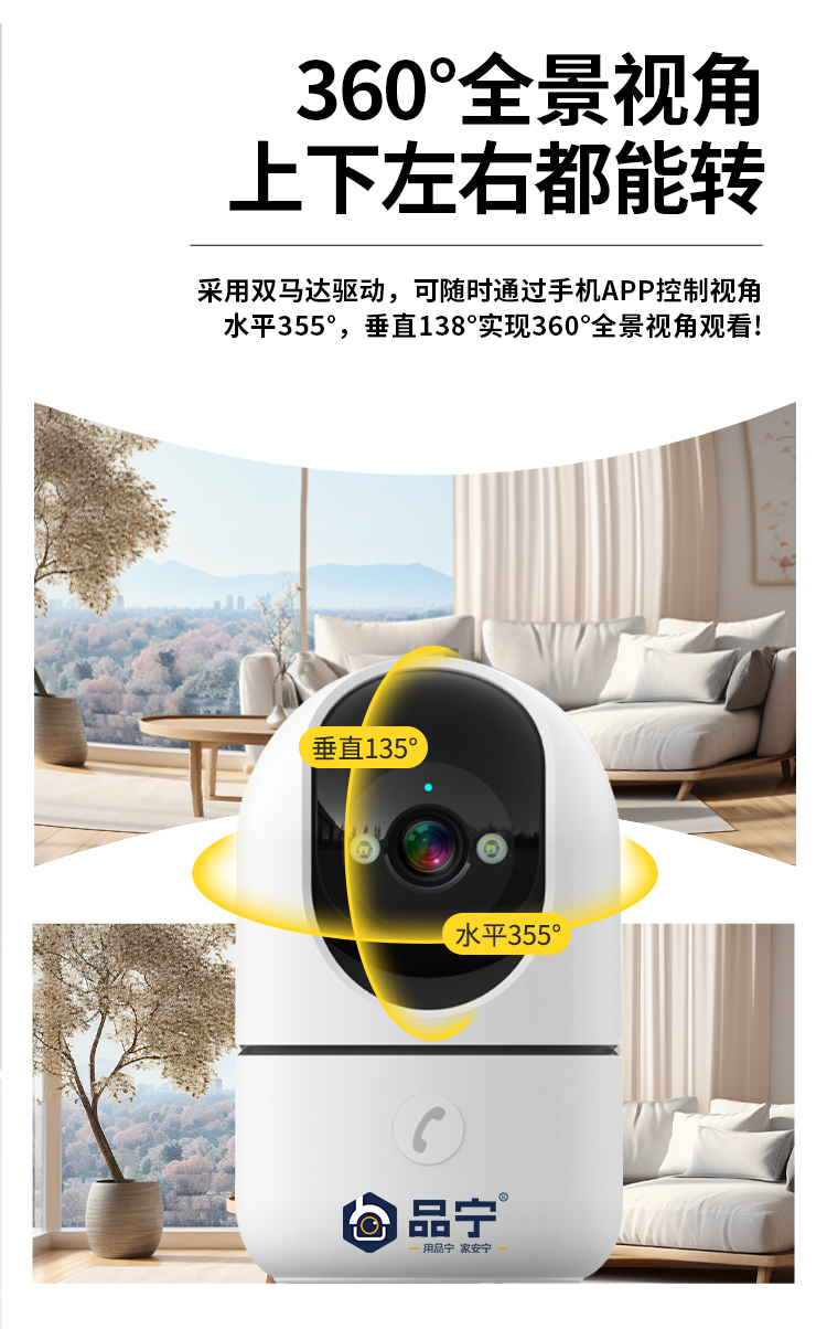 品宁小霸王升级款wifi款360度旋转全景室内超清远程家用连手机远程监控器